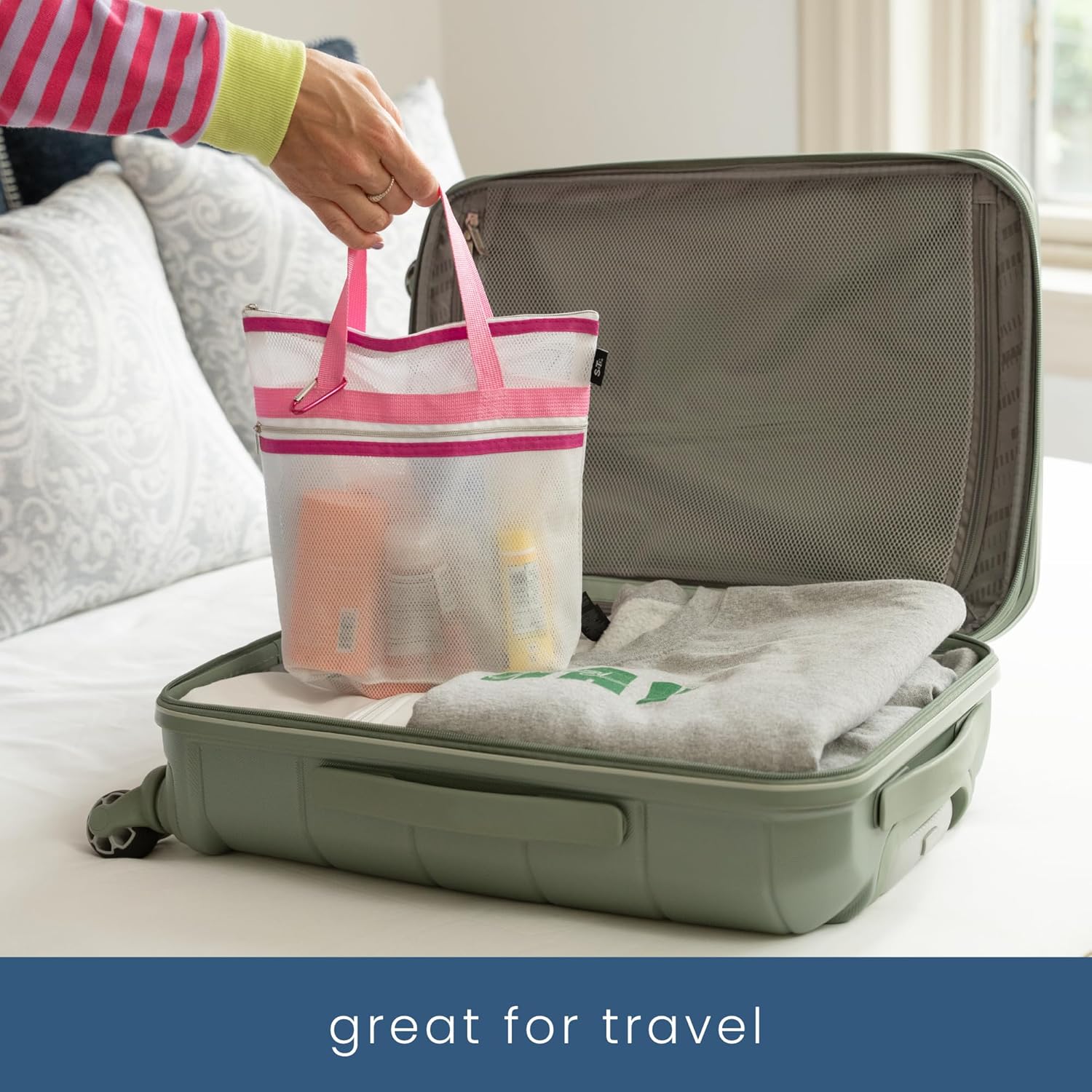 - Quick drying mesh allows water to drain easily, and the reinforced handles provide durable storage; perfect for college essentials, showering after a gym session, as a travel toiletry bag, and more