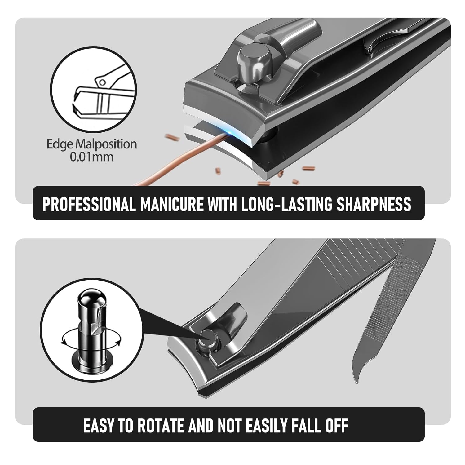 - 【Sharp Cutter Blade】Our nail clipper edge is wider than the original one , Easier to trim thick nails. as well as providing superior leverage which also makes it great for seniors. And our nail clippers have built-in fish-scale-like nail file which can make your fingernails smooth and good looking.