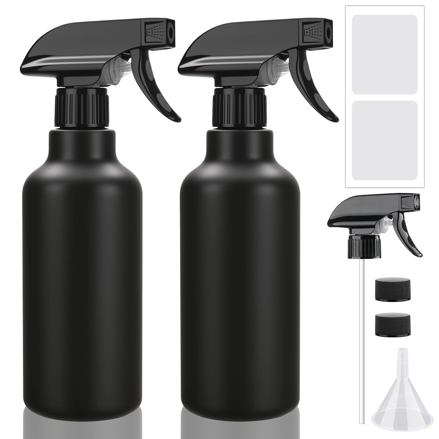 Spray Bottles 16.9oz/500ml Plastic Empty Spray Bottle for Hair Mist/Stream Spraying Heavy Duty Water Spray Bottles for Cleaning Solutions, Plants 2 Pack (Black)