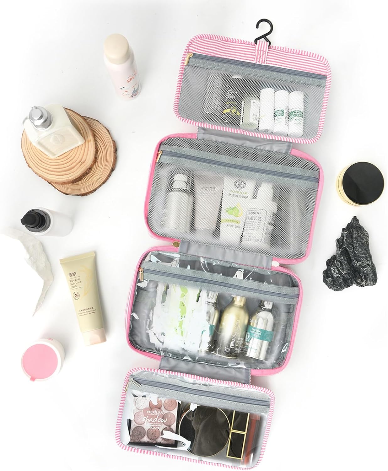 - SUITABLE FOR VARIOUS OCCASIONS: It's ideal for storing and organizing household cosmetics and toiletries, travel supplies, makeup for performances and dances, and weddings and bridesmaids' makeup. It's perfect for overnight stays, long trips, business trips, gym showers, and outdoor activities. It's the ideal companion for business trips, travel, fitness, camping, campus, and at home