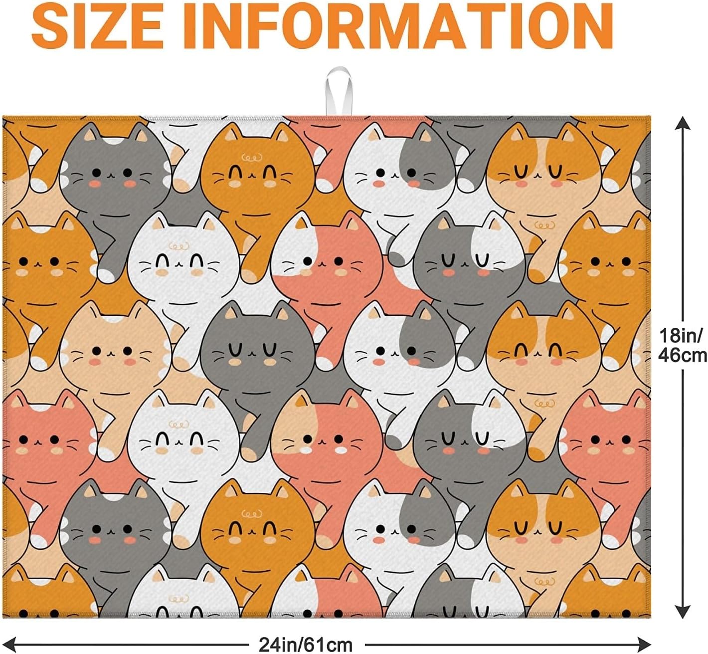 Dish Drying Mat For Kitchen Counter, Cute Cats Animals Microfiber Absorbent Dish Drainer Rack Pad Reusable Large 18x24in Drying Mat