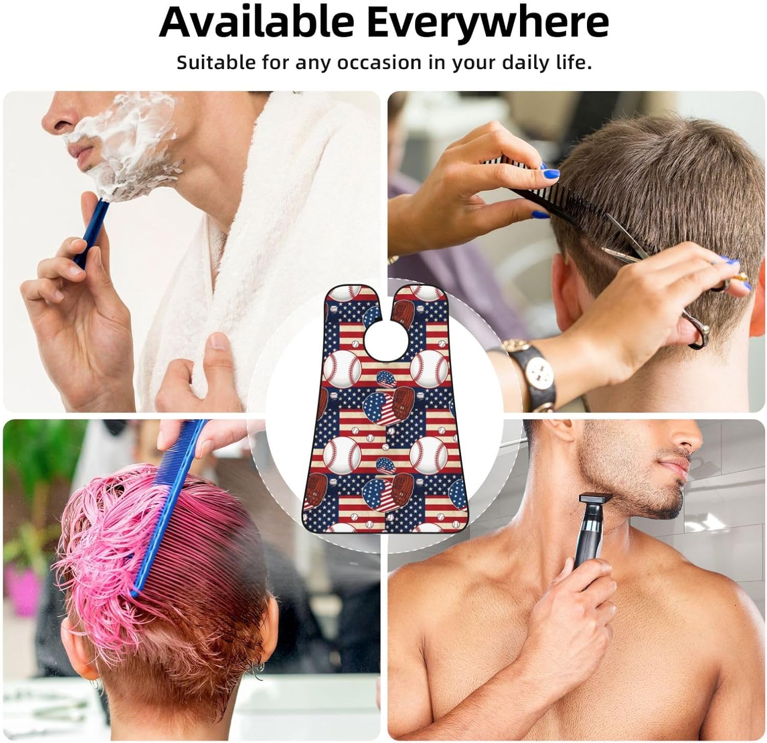 Adjustable Non-Stick Beard Apron, Hair Catcher Cape for Shaving Grooming, Waterproof with Suction Cups Men, Rustic Wooden American Flag Baseball Sport Shave Bib
