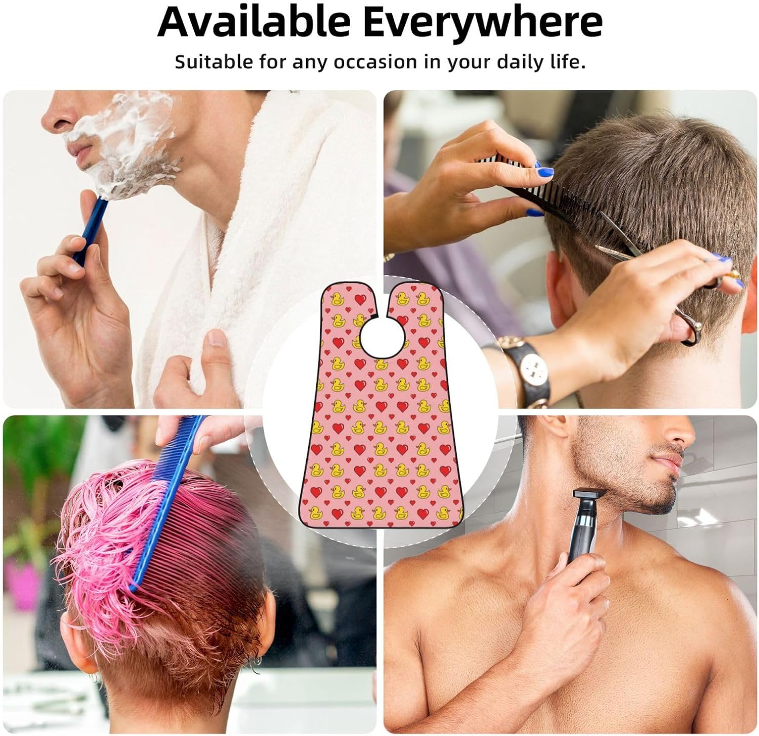 Beard Trimming Hair Catcher, Pink Heart Polka Dots Yellow Rubber Ducks Shave Bib, Non-Stick Bib Apron Waterproof, Shaving Tool for Men for Husband Father’s Day