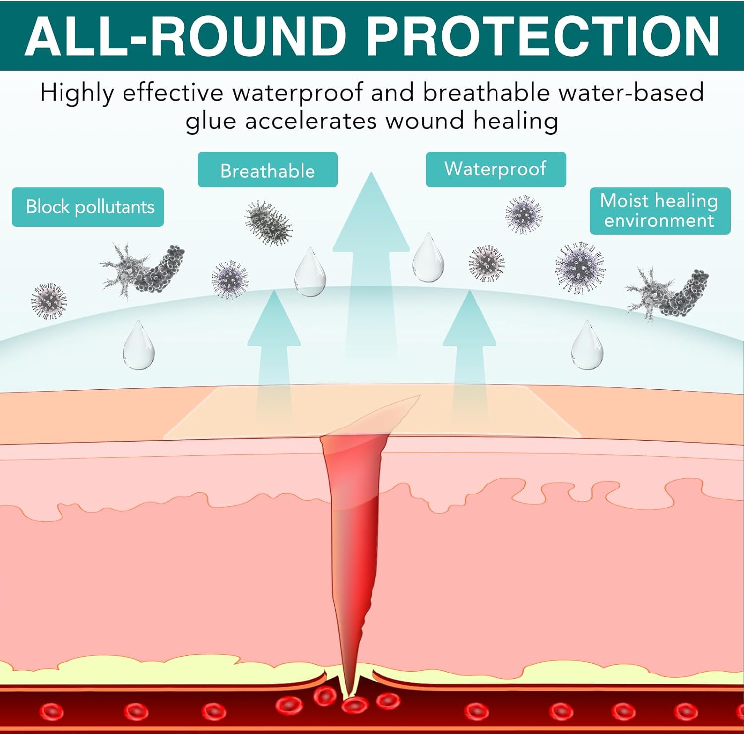 - ✨️ Ultra-strong protective shield - Hydrocolloid gel bandages waterproof and stain-resistant, no water penetration during bathing or daily activities, isolating wounds from external contaminants.