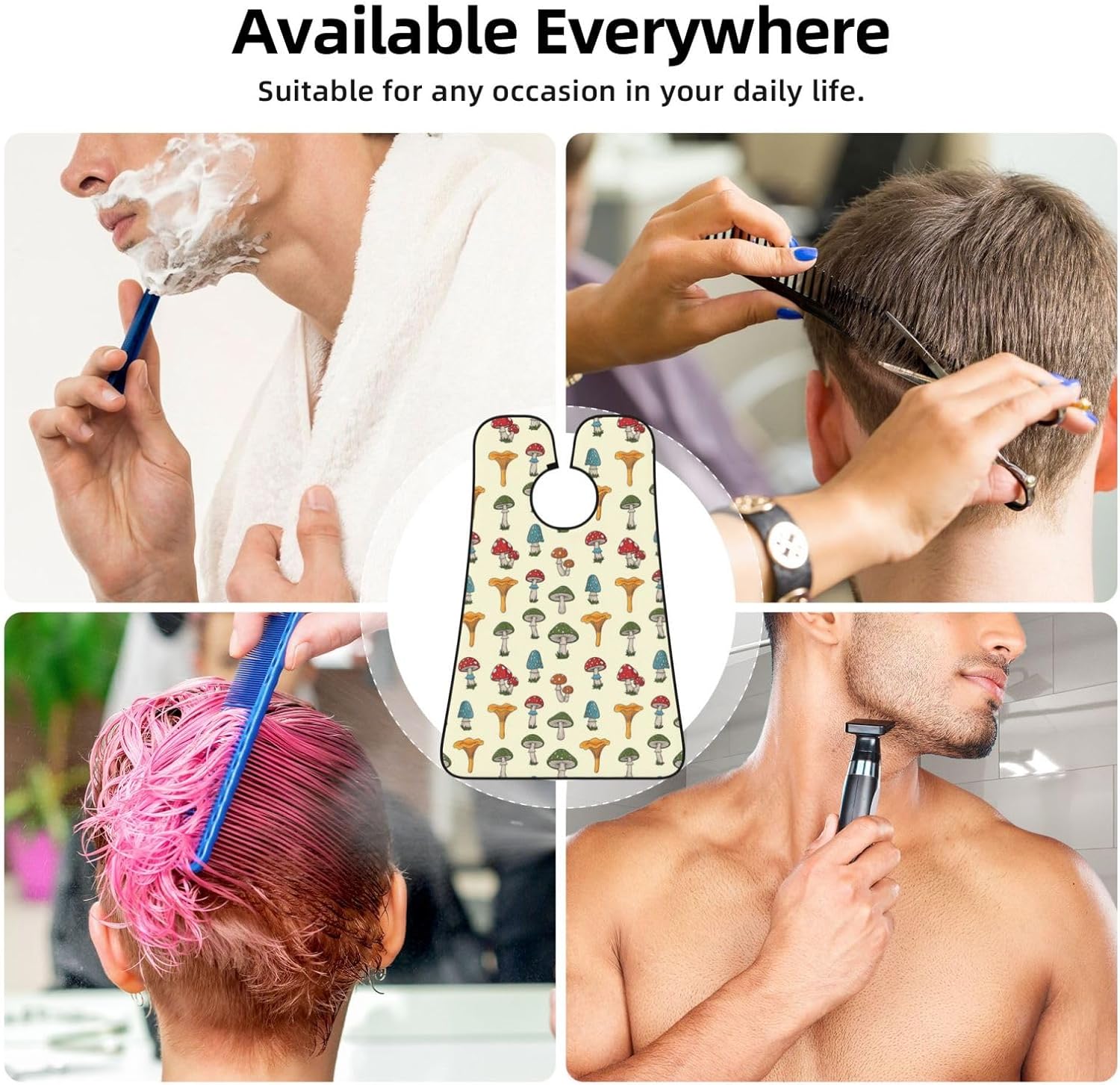 Beard Grooming Cape, Waterproof Hair Catcher for Shaving Trimming, Non-Stick Bib Apron Gifts for Dad Men, Female Ladies Legs Various Mushrooms Shave Bib