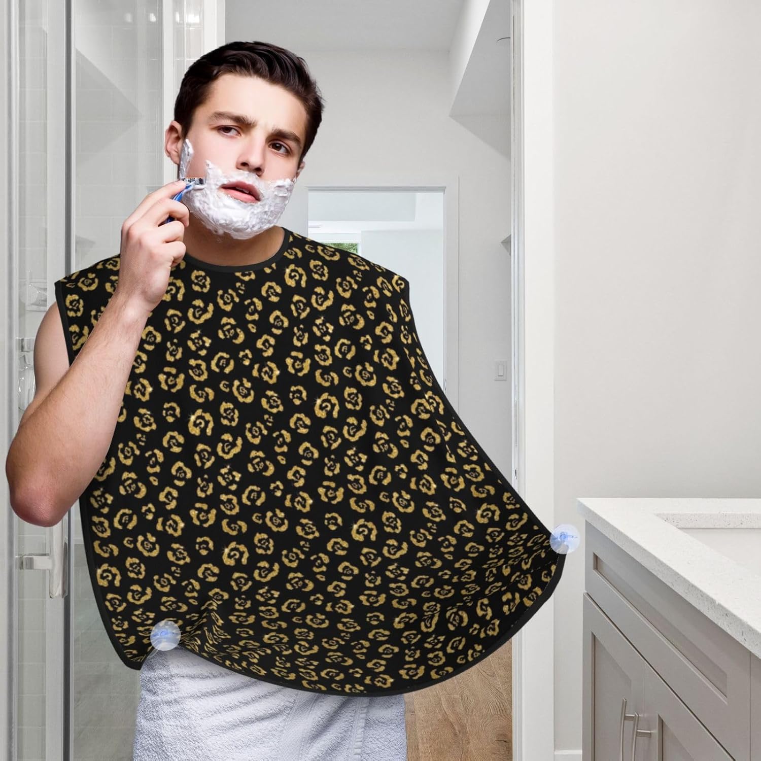 Non-Stick Beard Shaving Bib, Hair Catcher Apron with Suction Cups, Waterproof Grooming Tool for Men Husband, Gold Glitter Wild Animal Black Cheetah Leopard Ptint Shave Bib