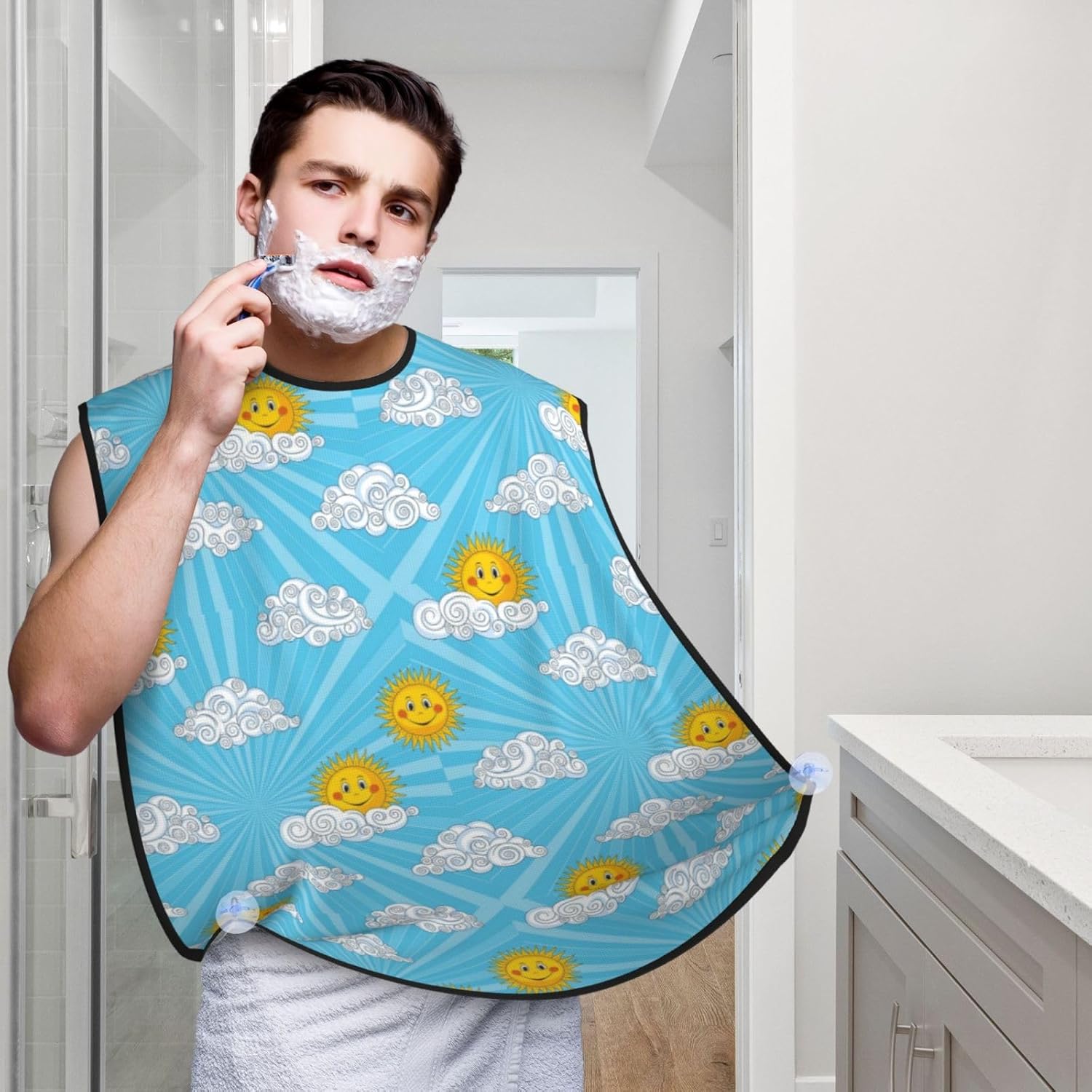 Adjustable Non-Stick Beard Apron, Hair Catcher Cape for Shaving Grooming, Waterproof with Suction Cups Men, Hippie Boho Style Sun Art Shave Bib