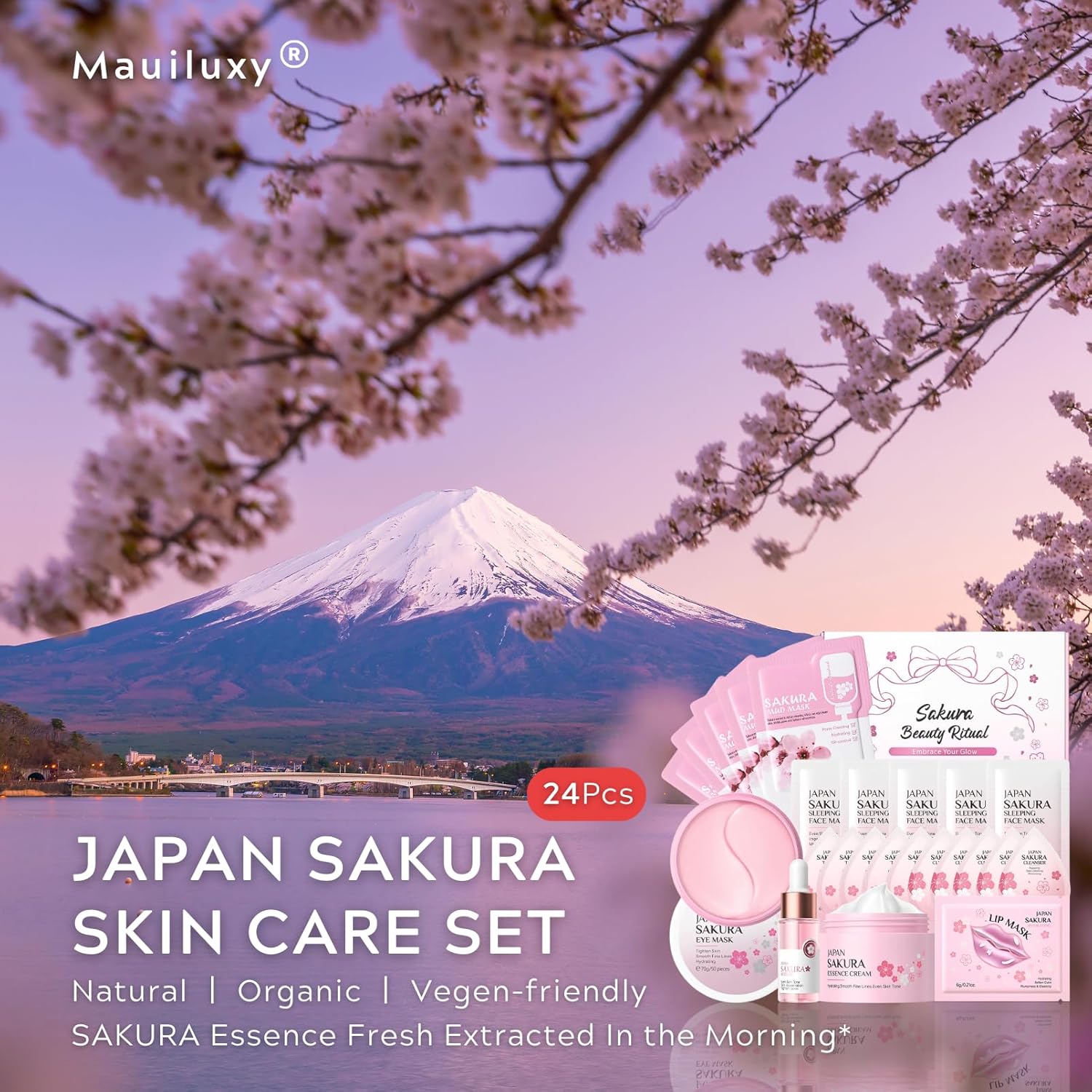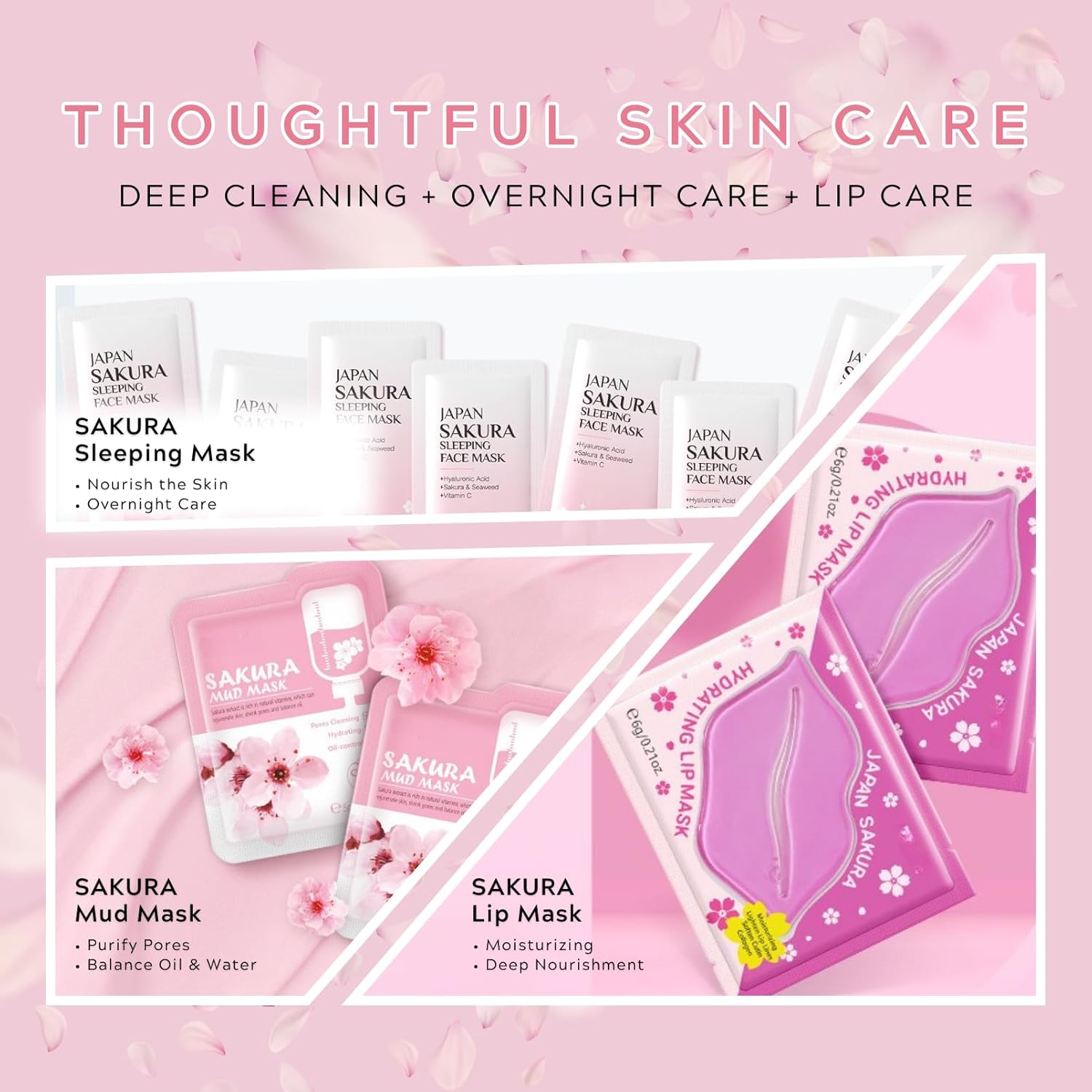 - 【Your All-in-One Skincare Ritual, Simplified】-- Experience a complete facial care process with our 24-piece kit, simplifying skincare into three easy steps: cleanse, nourish, and moisturize. This comprehensive collection includes a Sakura Essence Cream, Face Serum, Toner, Cleanser, Lip Mask, Mud Mask, Sleeping Mask, and Eye Mask. Kid skin care set and teen skin care kit, providing kids skincare sets for girls 8-10 and skin care for teens 10-12 with everything needed for a consistent routine