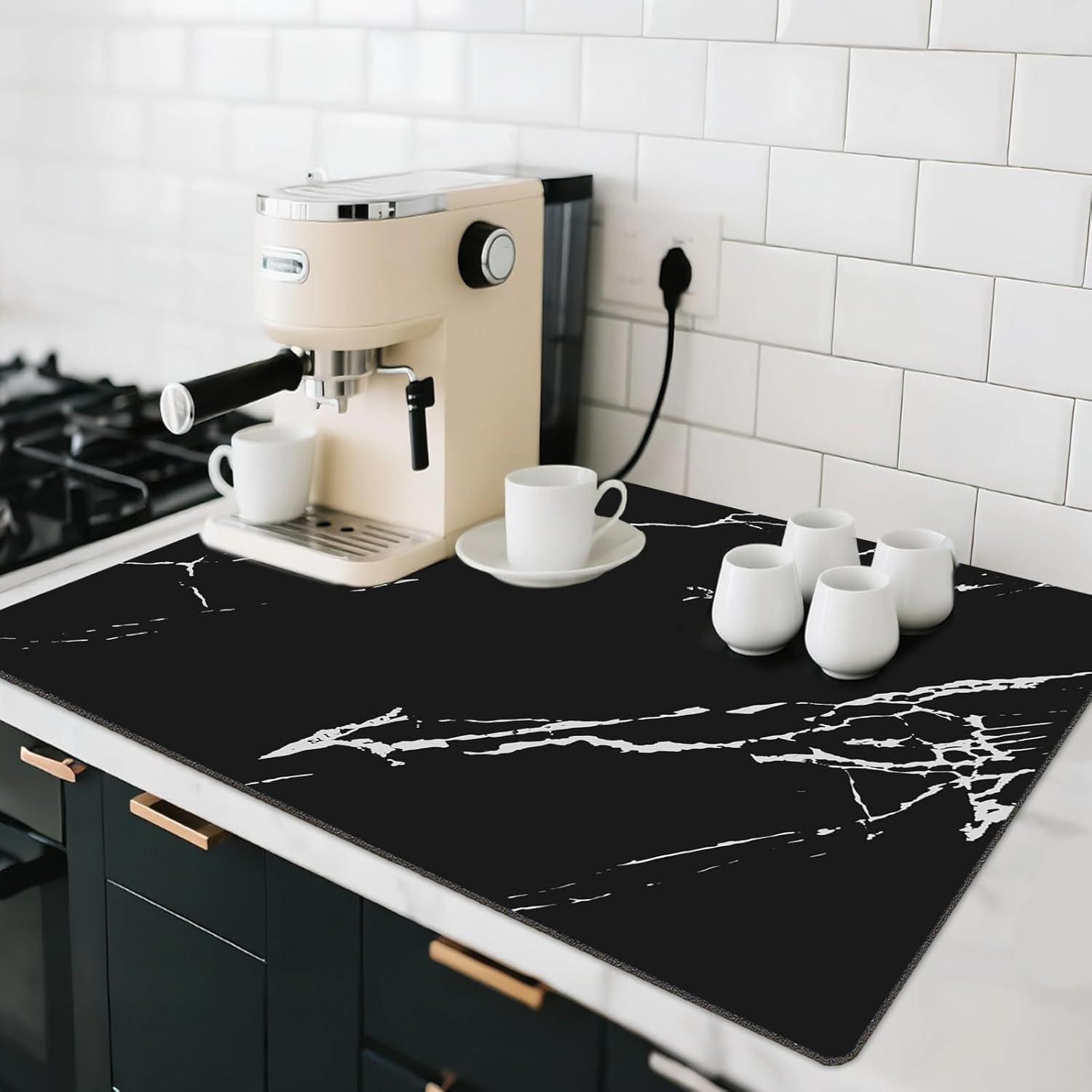 - 【Hiding Stains & Easy to Clean】Unlike traditional cloth or other coffee machine mats, the surface of special PU materials can effectively hide stains such as water, coffee, and milk, saying goodbye to messy and stained countertops. You only need to wipe or rinse to keep it clean. The drying mat can be rolled up and stored in the drawer without taking up extra space.