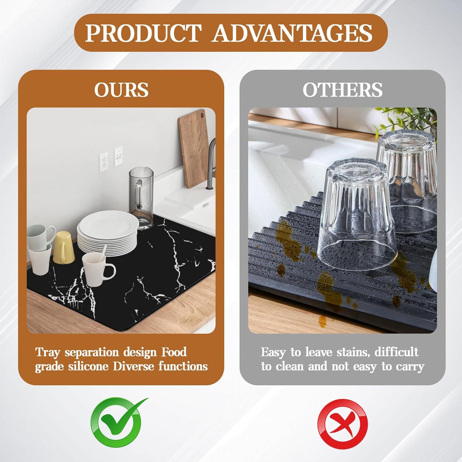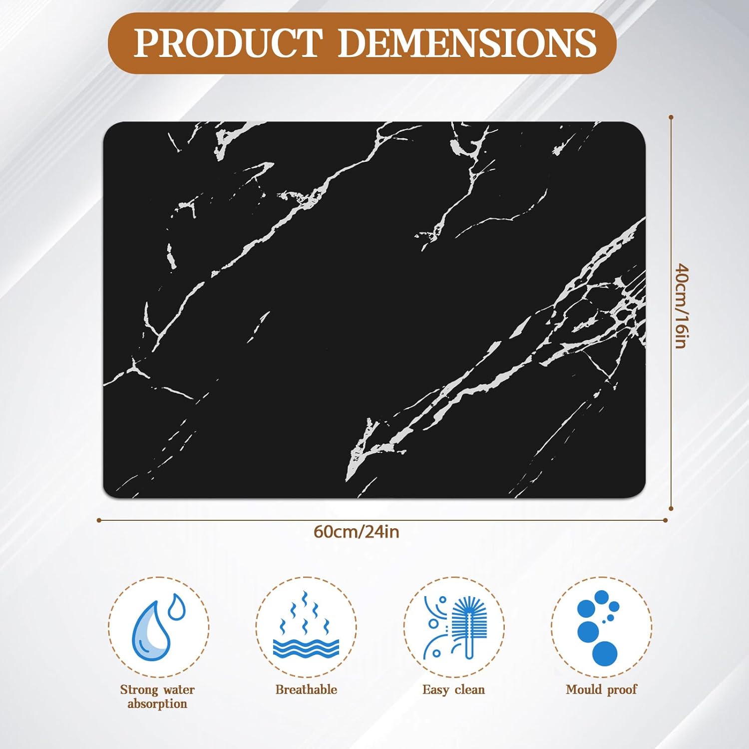- 【Large Dish Drying Mat】The dimensions of the XL large dish drying mats are 24 x 16 inches, can hold pots, pans, and more dishes. The unique marble pattern of the drying mat is very stylish and durable. Drying mats are perfect for under the sink, bathroom countertops.