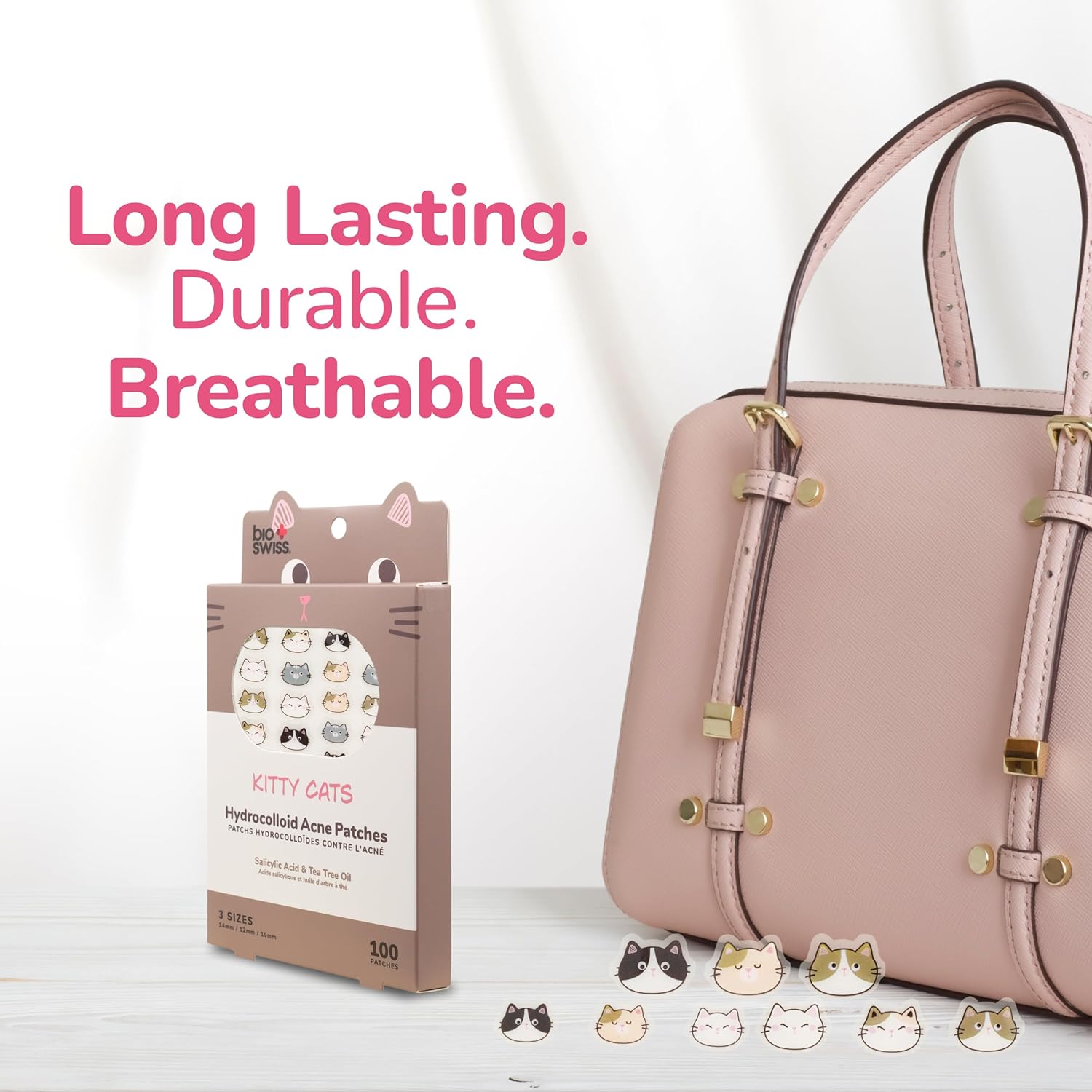 BioSwiss Pimple Patches, Kitty Cats Patch for Zits and Blemishes, Hydrocolloid Spot Stickers for Face and Skin, 100 Count