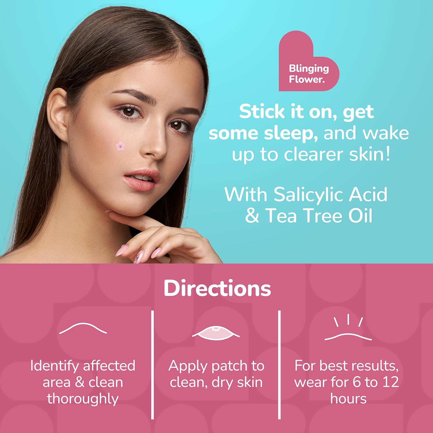 - BLINGING FLOWERS PATCHES: Tackle zits and blemishes effectively and achieve clear and smooth skin with our Blinging Flowers Acne Patches. Our patches for pimples come in 6 cute assorted styles