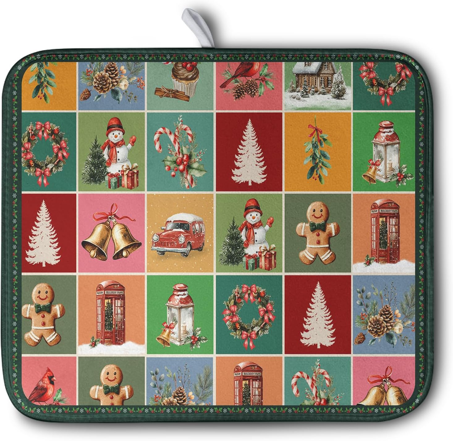 - Ultra Absorbency: The surface of the Christmas holiday dish drying mats for kitchen counter is made of absorbent microfiber and the middle is made of composite sponge, absorbs 4X its weight in water, keep your counter dry. Absorbent, Colorful, Reversible, do not fade