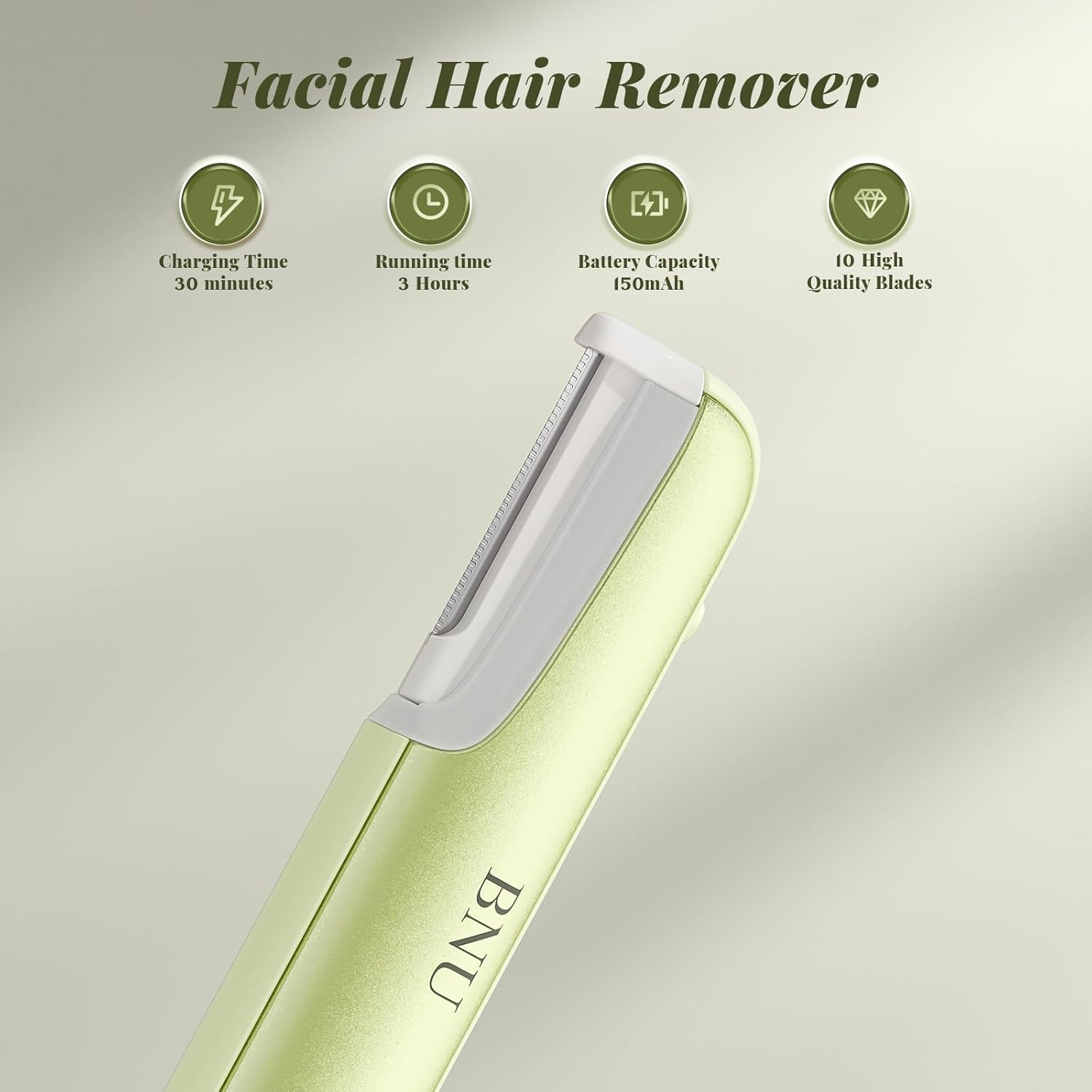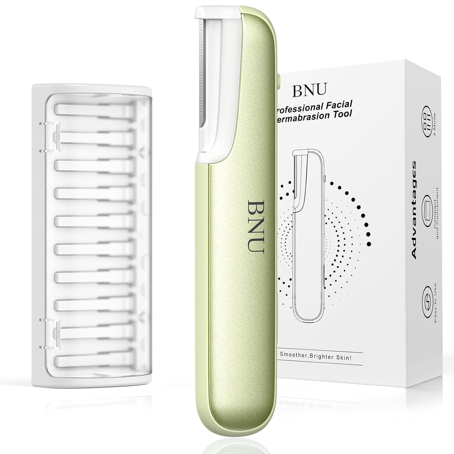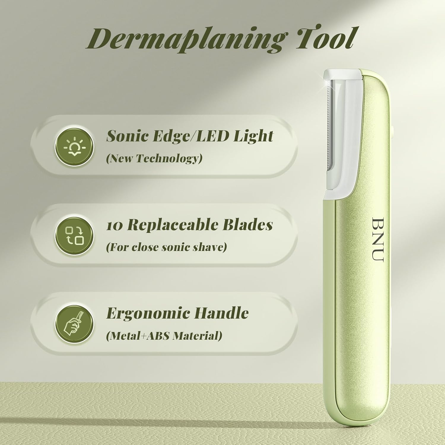BNU Dermaplane Razor for Women, Face Razor for Women with 10 Replaceable Blades - Face Exfoliation Razor - Body Peach Fuzz Removal - Eyebrow Shaper - Sonic Edge Technology Dermaplaning Tool - Green