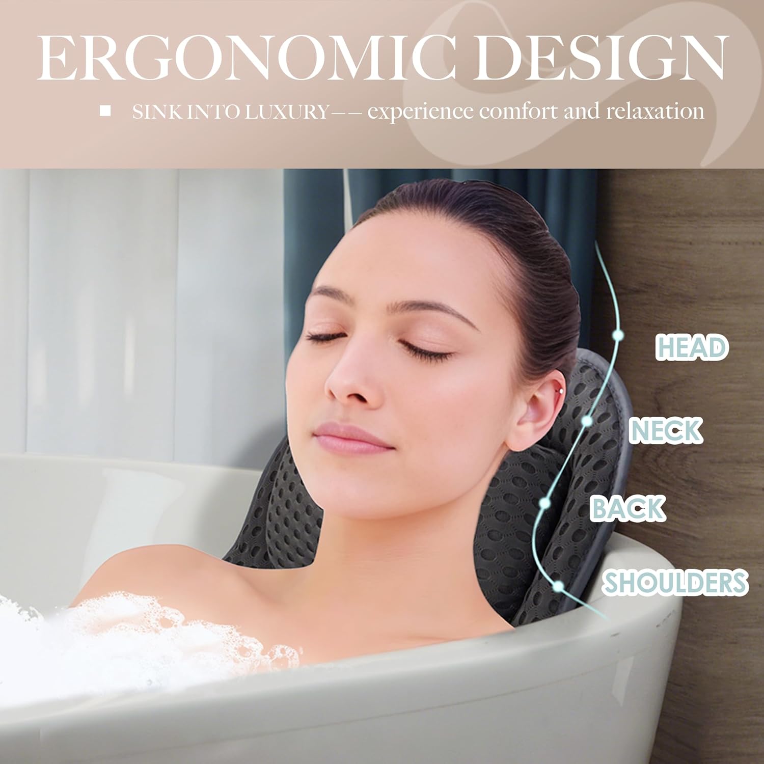 - [Designed for Head, Neck & Back Support]: Pillow for bathtub follows the natural curve of the body to provide gentle support for the head, neck, and shoulders. Bath tub pillow helps reduce tension and adds comfort, allowing you to enjoy a more soothing soak