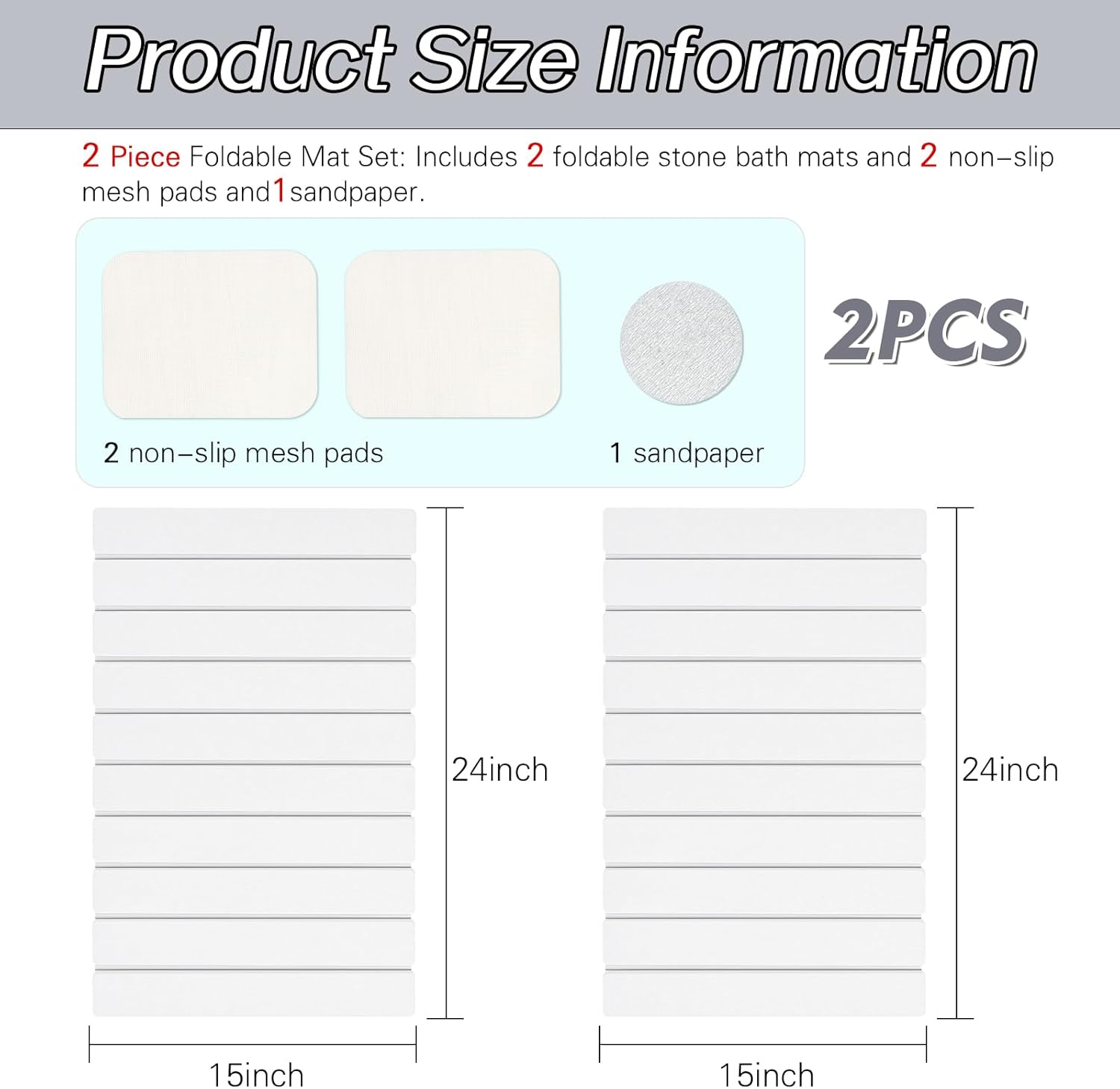 2 Pack Foldable Stone Bath Mats, White Super Absorbent Diatomaceous Earth Bath Rug, Non-Slip Shower Mat, Quick-Drying Bath Rug and Drying Mat for Tub and Shower