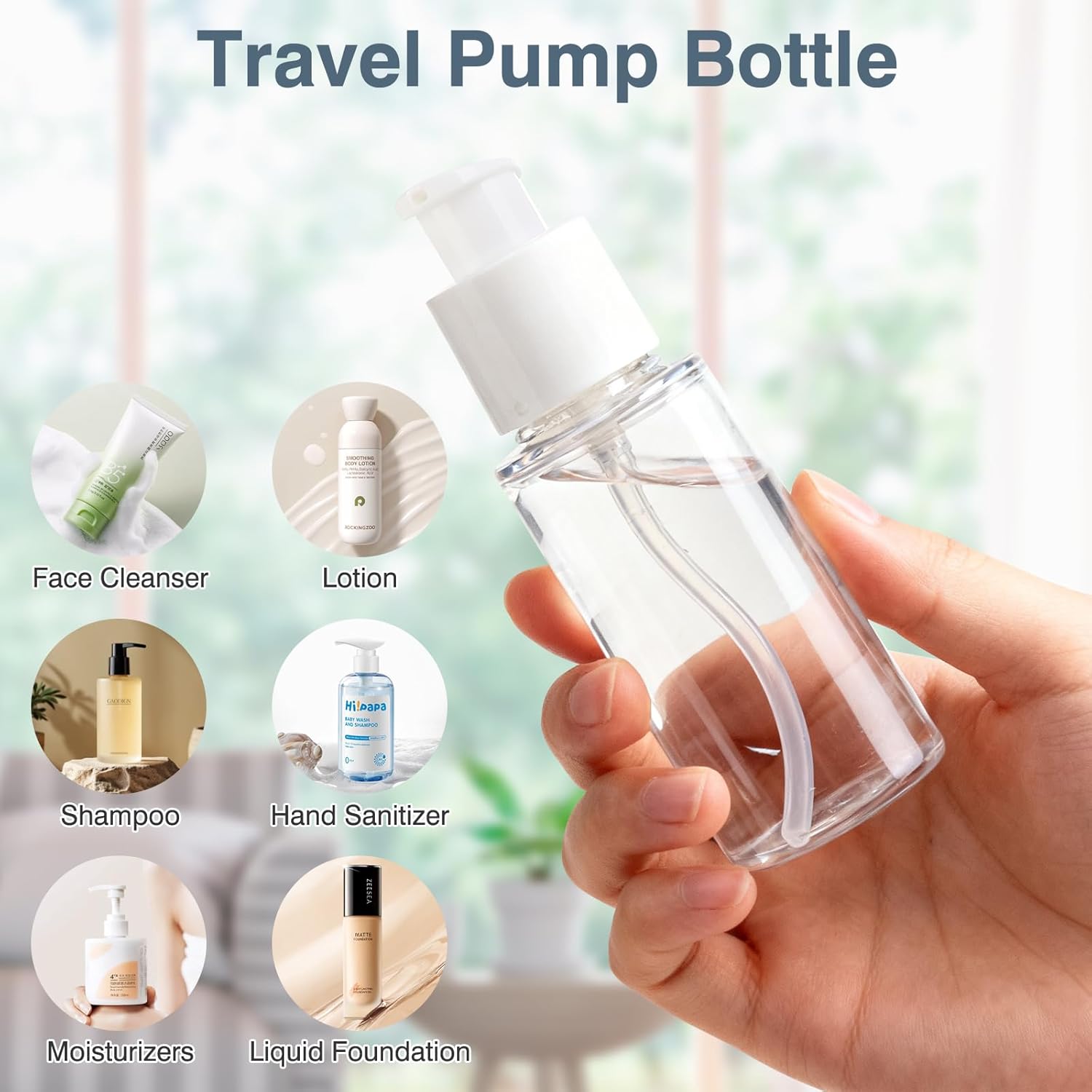 Boenoea Small Pump Bottle 1.7oz/50ml Travel Cosmetic Cream Pump Bottles Empty Pump Dispenser for Shampoo Lotion and Cream 2 Pack Clear