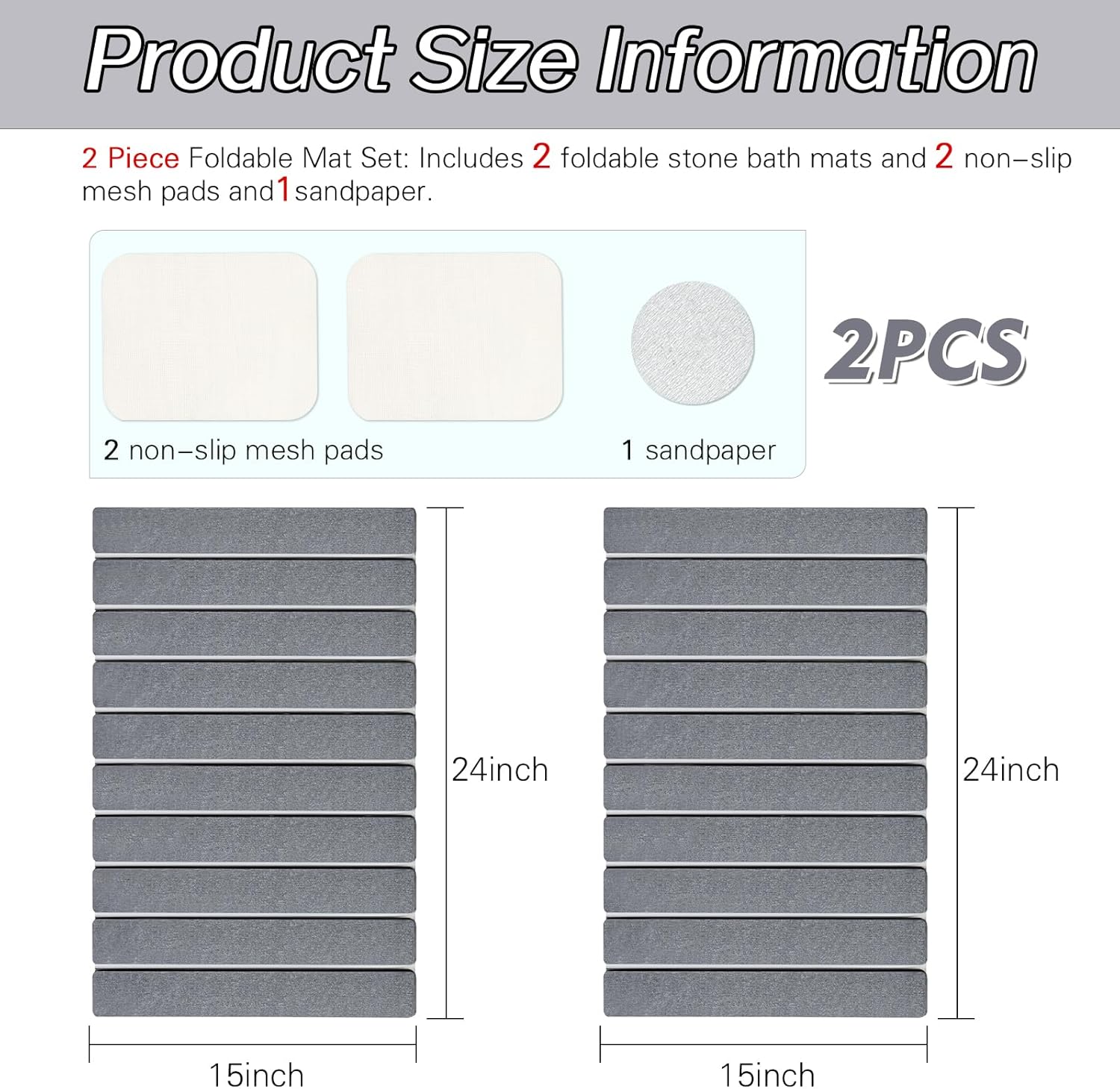 2 Pack Foldable Stone Bath Mats, Gray Super Absorbent Diatomaceous Earth Bath Rug, Non-Slip Shower Mat, Quick-Drying Bath Rug and Drying Mat for Tub and Shower