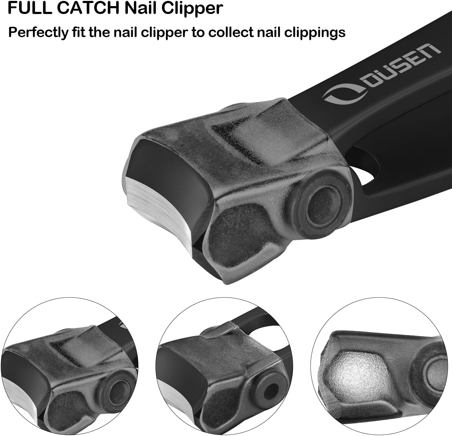 Nail Clippers with Full Catcher, Professional Anti Splash Nail Clipper for Men & Women, Wide Jaw Toenail Clippers for Seniors Thick Nails, Adult Toe Nail Clipper Fingernail Cutter Catch All Clippings