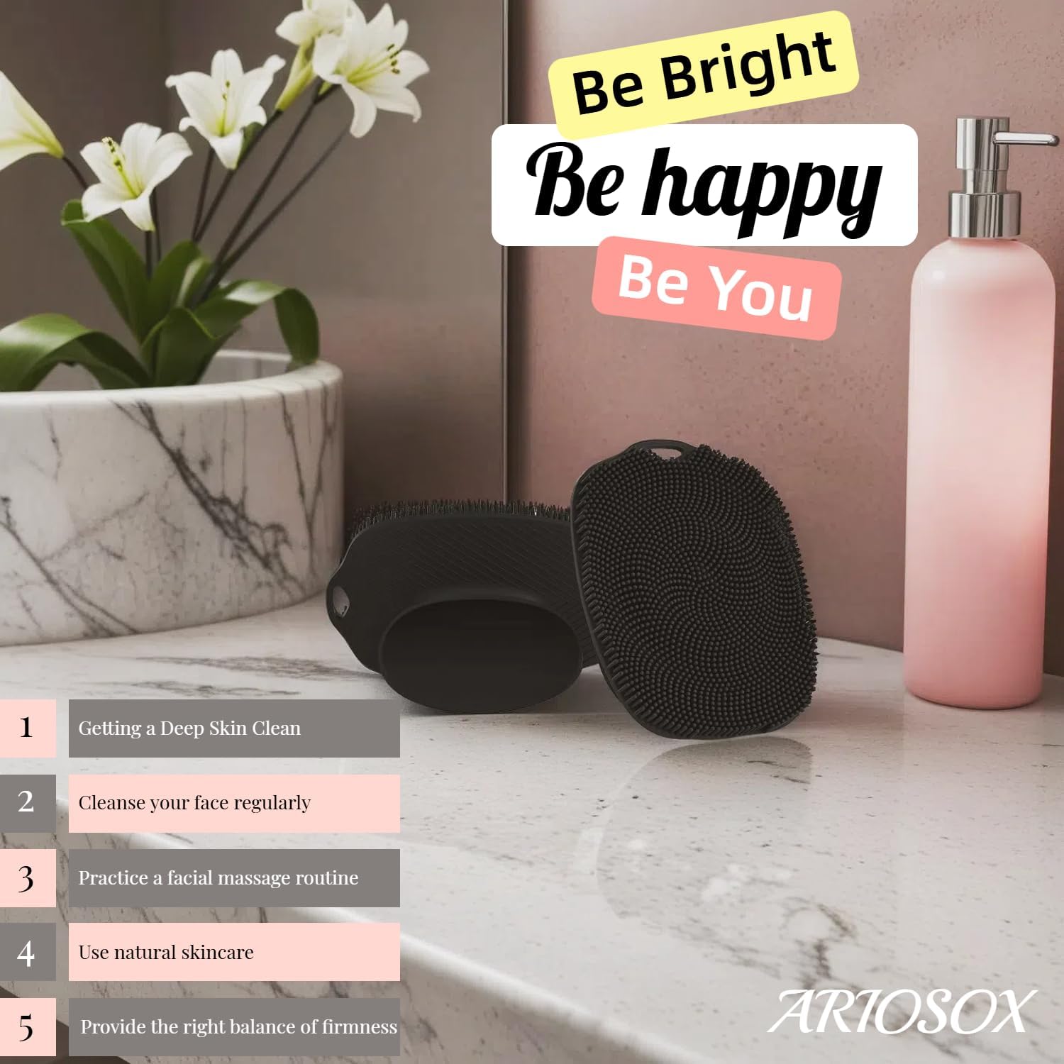 - SOFT TEXTURE: The ARIOSOX Silicone Facial Scrubber boasts soft silicone bristles that expertly balance firmness with gentleness. Designed to prevent irritation while delivering powerful cleaning and exfoliating results, this scrubber transforms your skincare routine. Each use feels like a luxurious massage, ensuring your skin is left smooth, refreshed, and revitalized