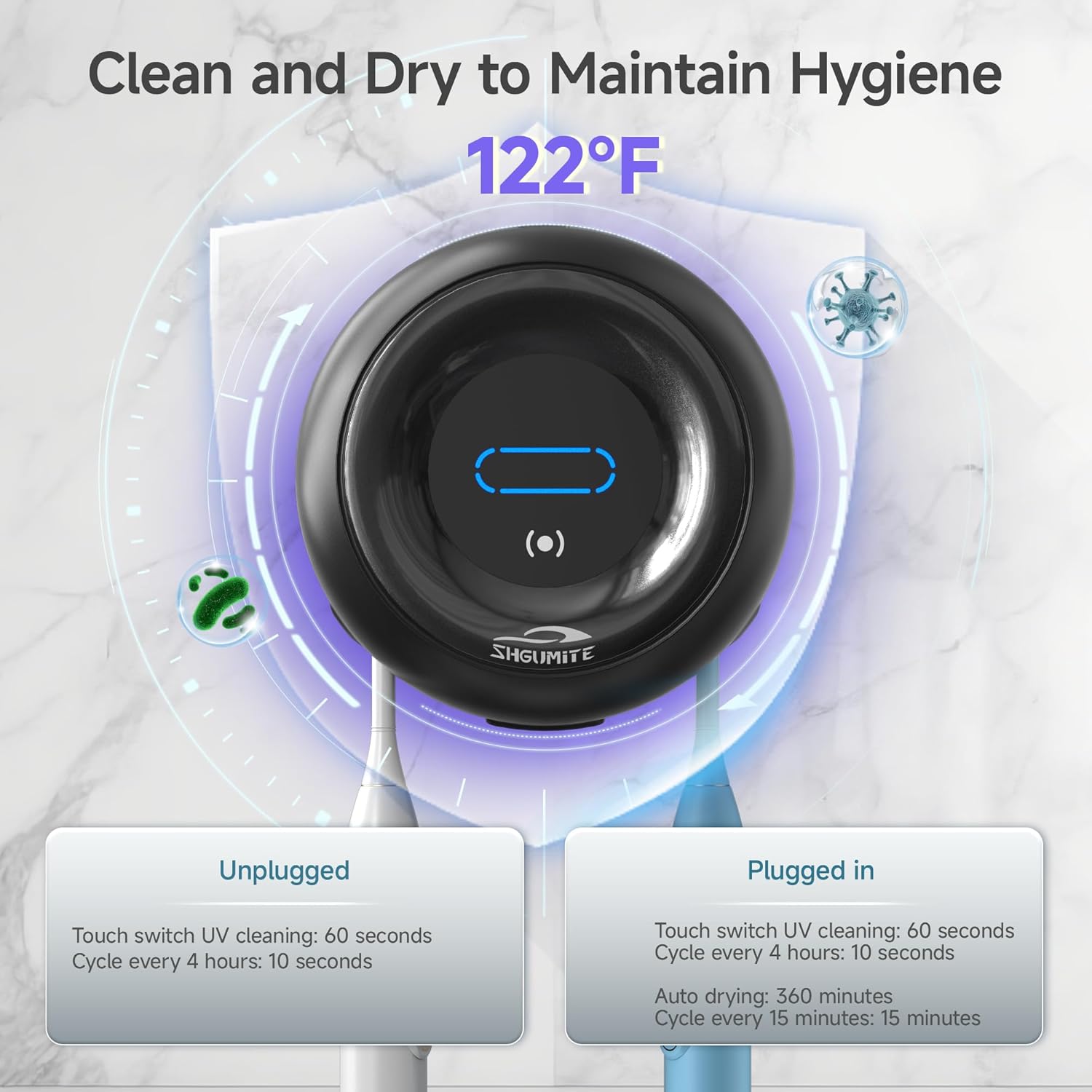 - Improved Oral Care: Press and hold the toothbrush holder for 3 seconds to enter a cycle of cleaning, killing 99.9% of dirt. Once connected to the power supply, it automatically switches to a constant temperature of 50°C for drying, ensuring your toothbrush is completely dry and hygienic after each use