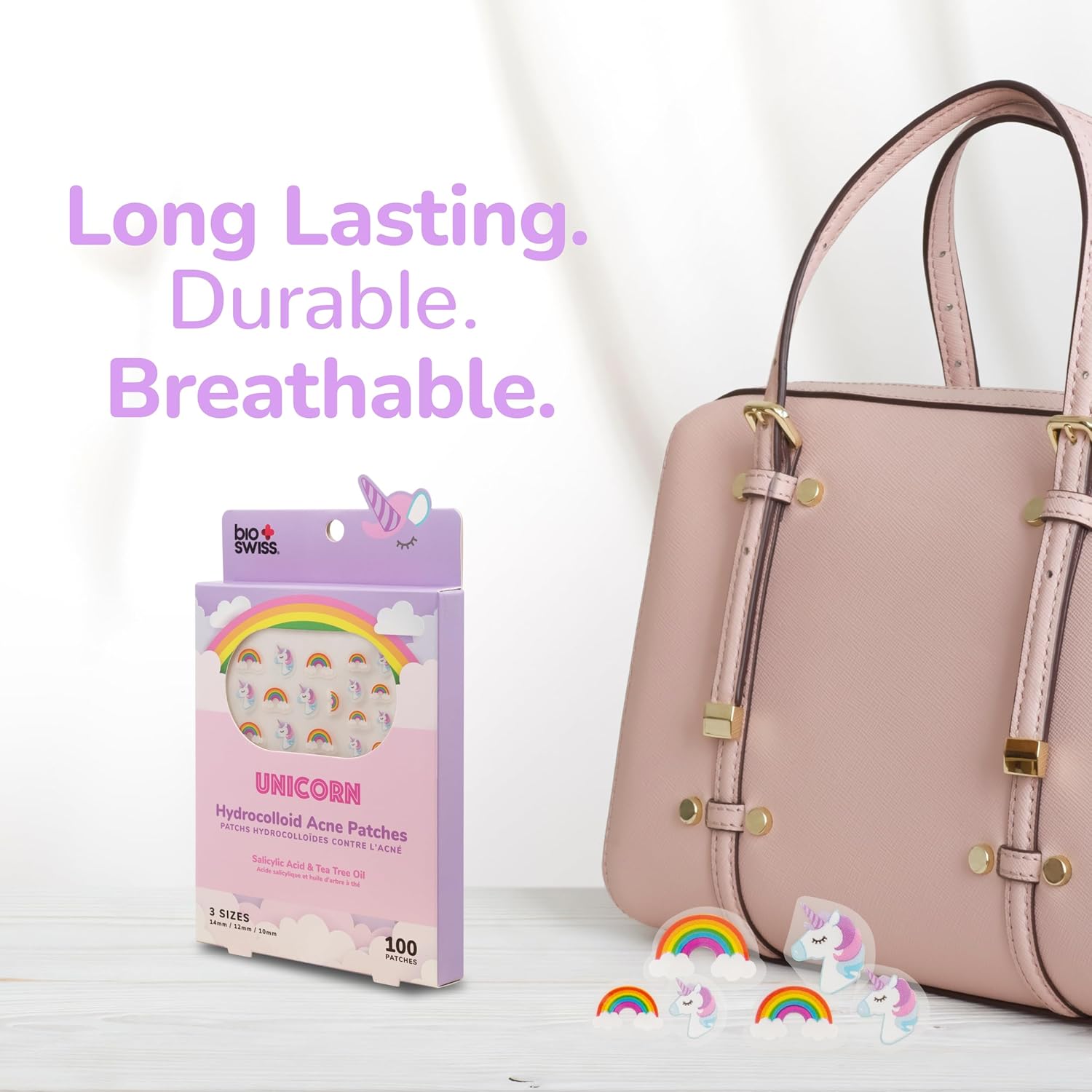 BioSwiss Pimple Patches, Rainbow Unicorn Patch for Zits and Blemishes, Hydrocolloid Spot Stickers for Face and Skin, 100 Count