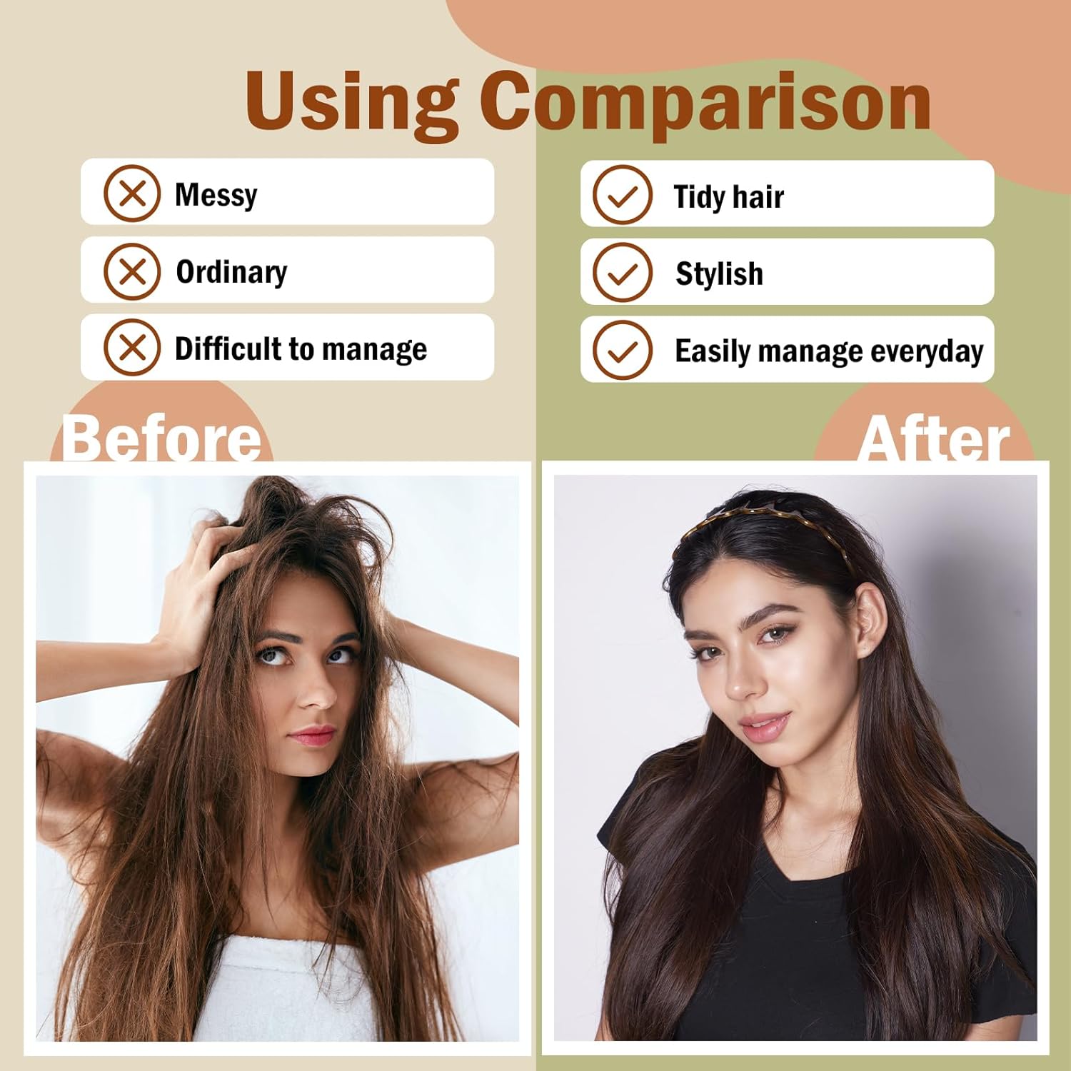 - Versatile U-Shape Headband: Switch between two stunning hairstyles with one headband! Teeth-forward for extra volume or flipped for a stylish look. Perfect for braids, ponytails, or loose hair—this high cranium headband has it all.