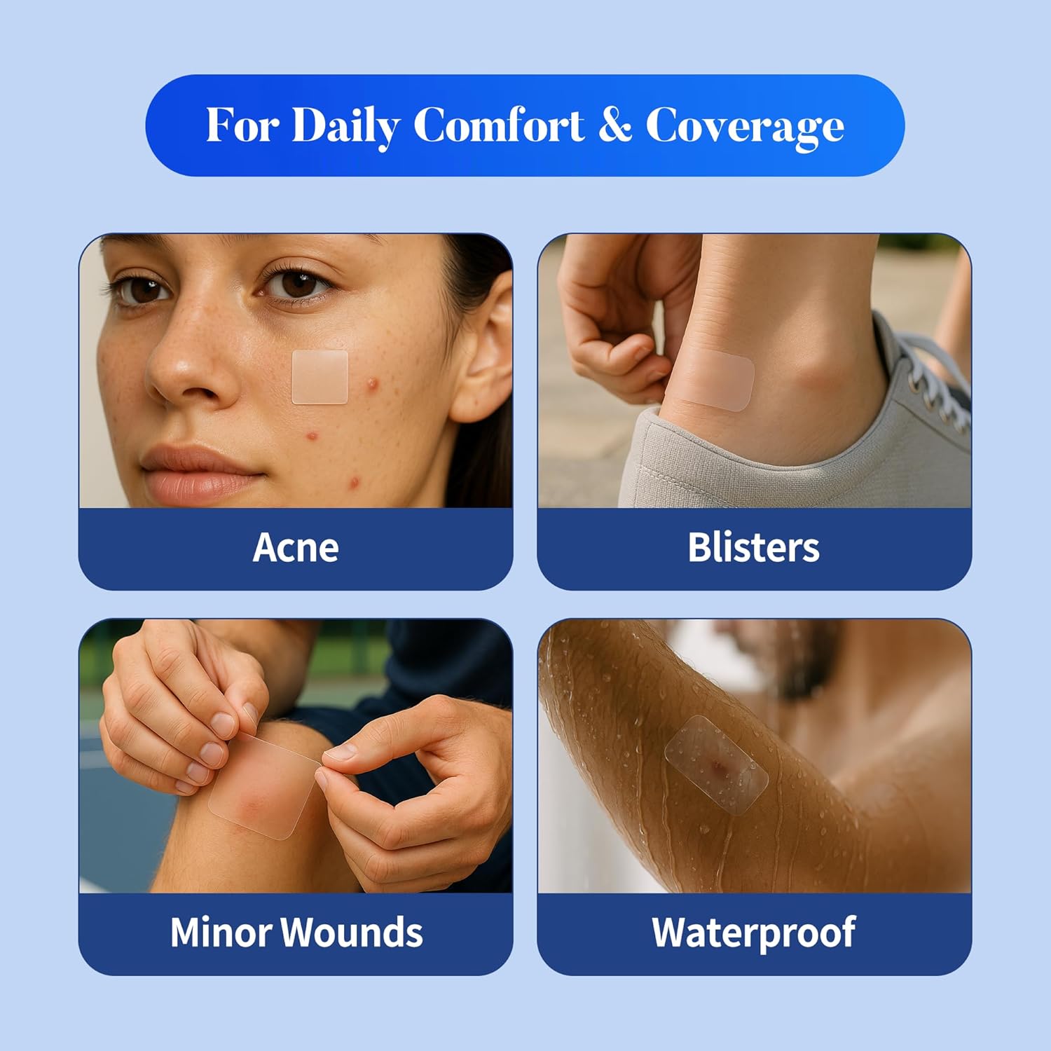 - Wound & Scar Protection: Supports natural recovery by covering cuts, pimples, blisters, and scars, keeping skin clean and protected.