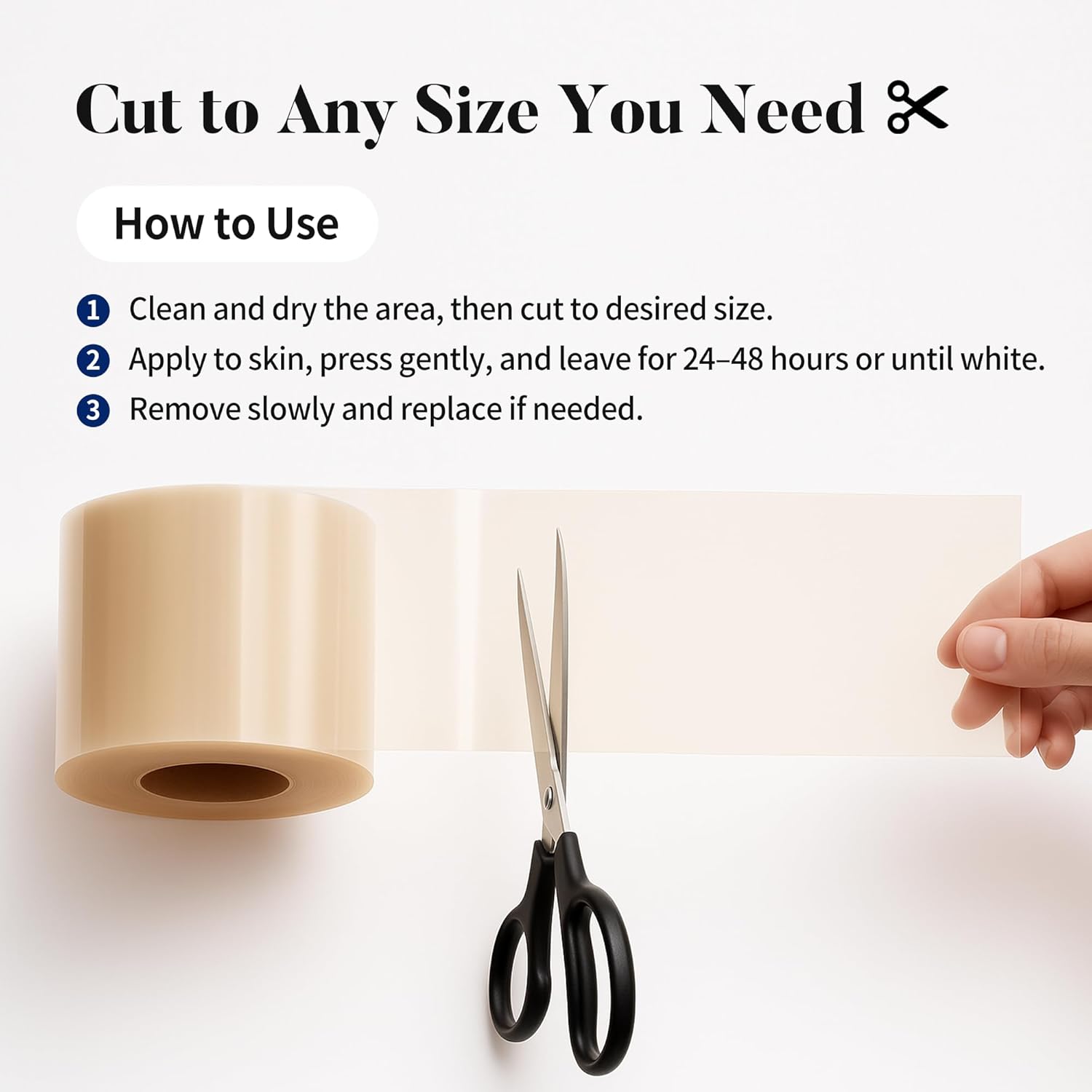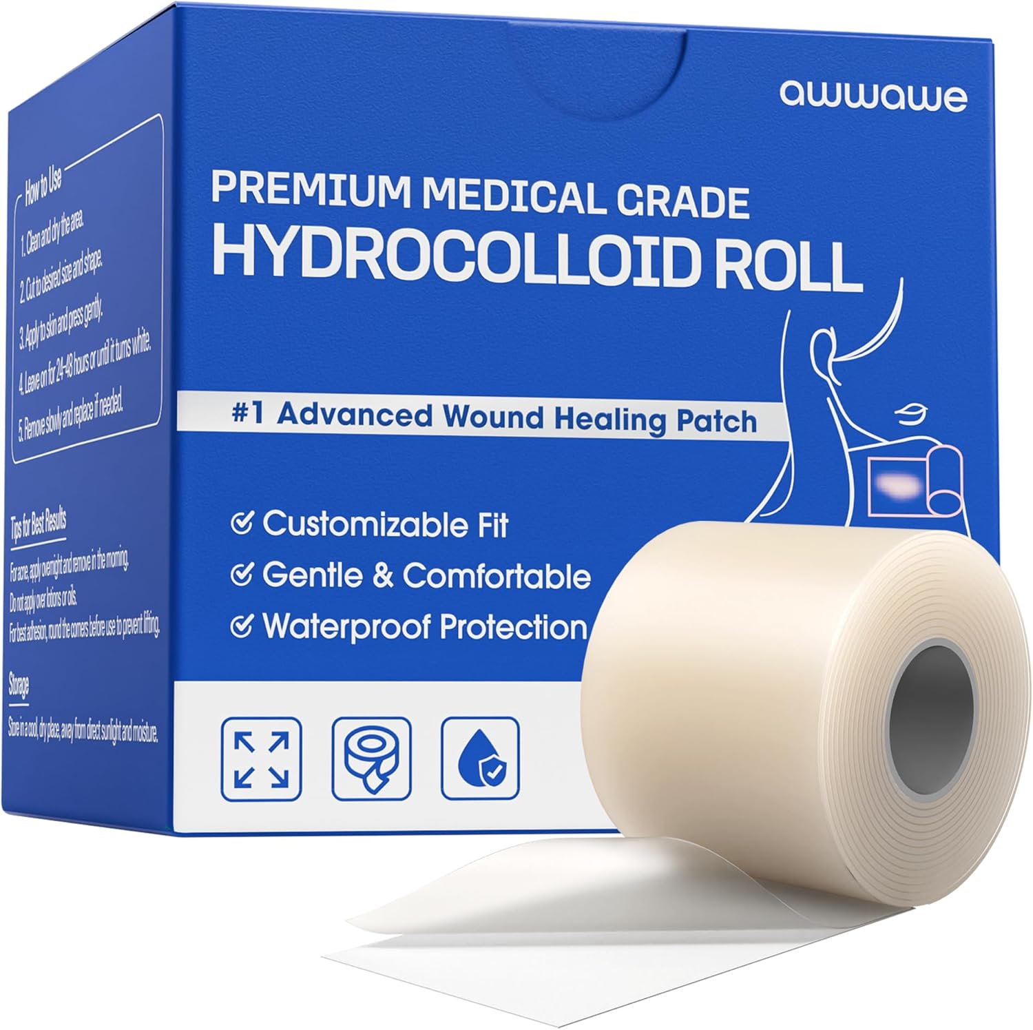 - Customizable Size: Large 2in x 10ft (5cm x 3m) hydrocolloid roll, 0.4mm thick, easily cut to fit acne, blisters, or wound areas for versatile use.