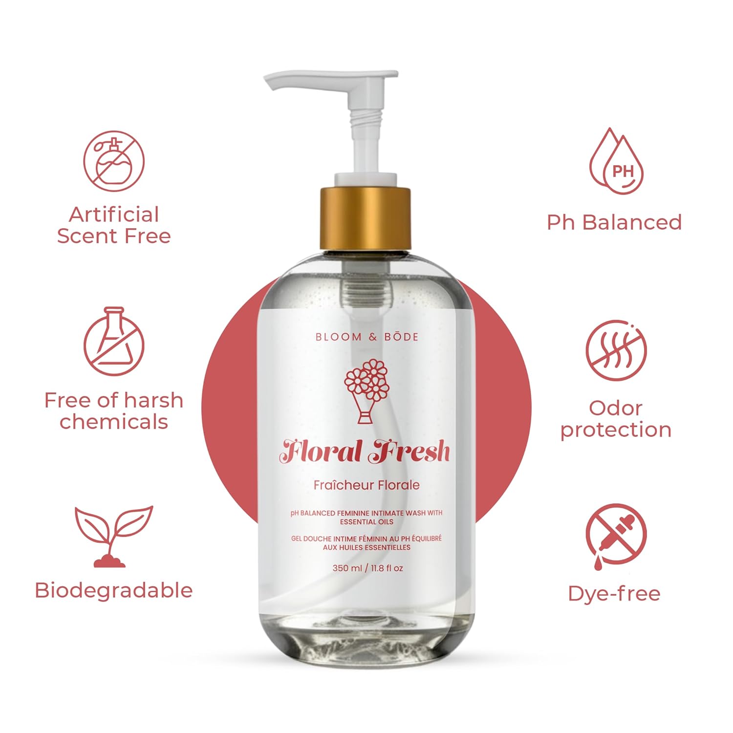 Bloom & Bōde Premium Feminine Intimate Wash - pH Balanced Feminine Wash - Ultra Mosturizing Intimate Wash With Essential Oils & Aloe Vera - Floral Fresh Scent, 350ml