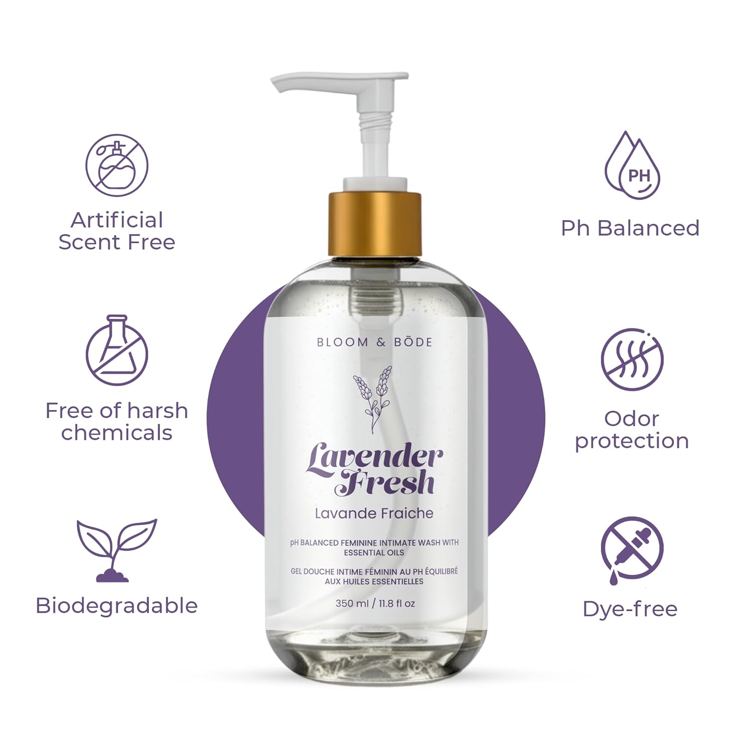 Bloom & Bōde Premium Feminine Intimate Wash - pH Balanced Feminine Wash - Ultra Mosturizing Intimate Wash With Essential Oils & Aloe Vera - Lavender Fresh Scent, 350ml