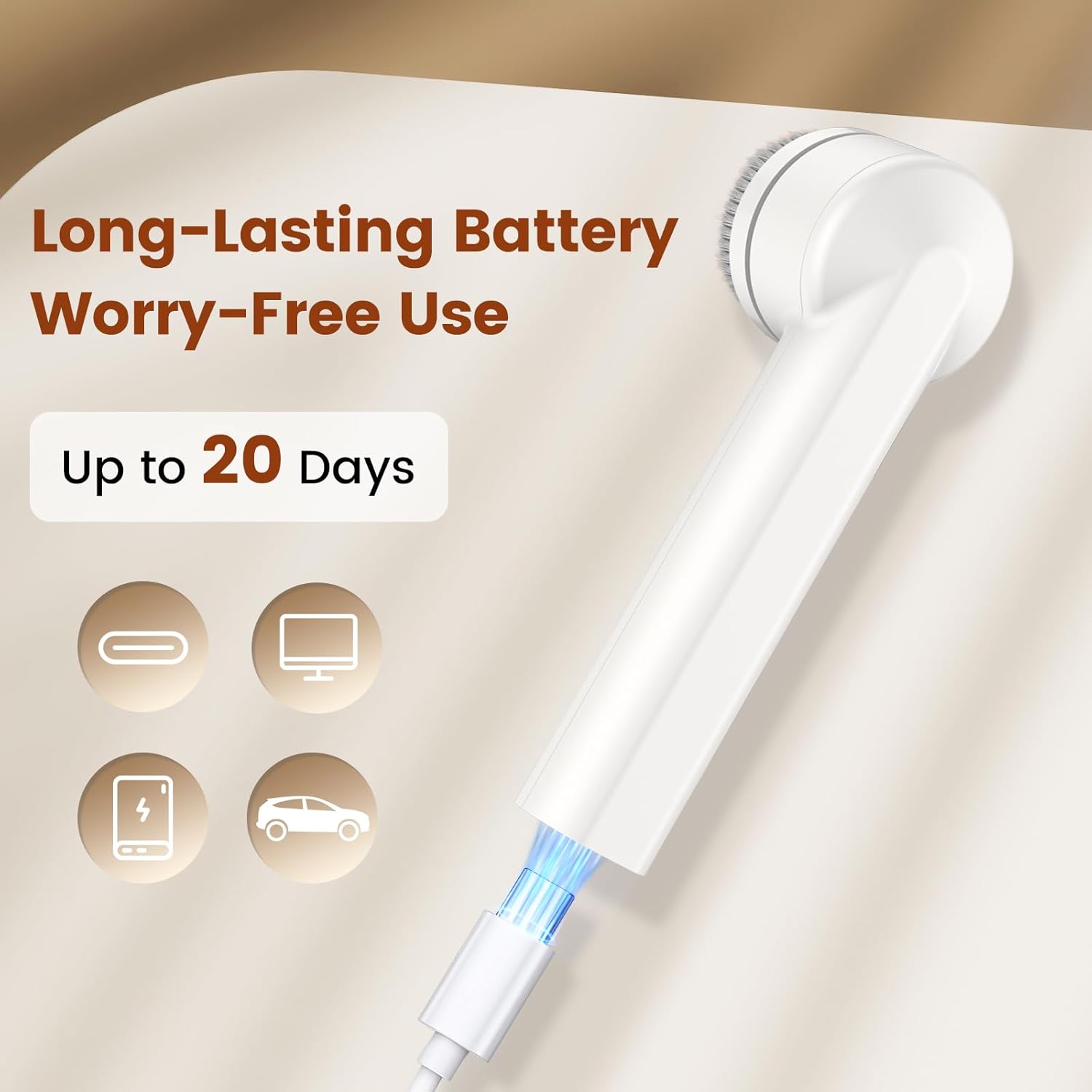 - Rechargeable Face Scrubber: This electric face scrubber is powered by a rechargeable 600 mAh battery. Long-lasting up to 20 days of normal daily use, can be fully charged in just 2.5 hours