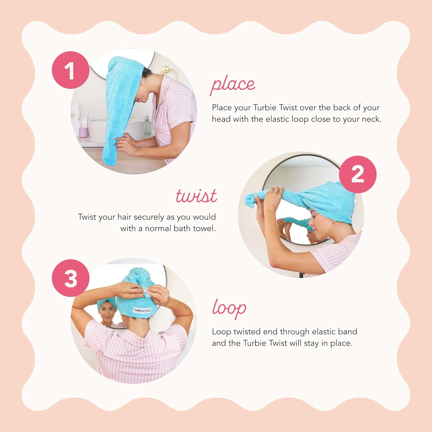 Turbie Twist 3-Pack Microfiber Hair Towel for Beauty, Travel, Gifting - Hair Wrap Turban for Straight, Wavy & Curly Hair - Premium Personal Care - Gray, Blue & Pink