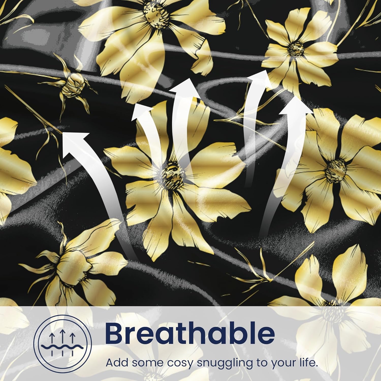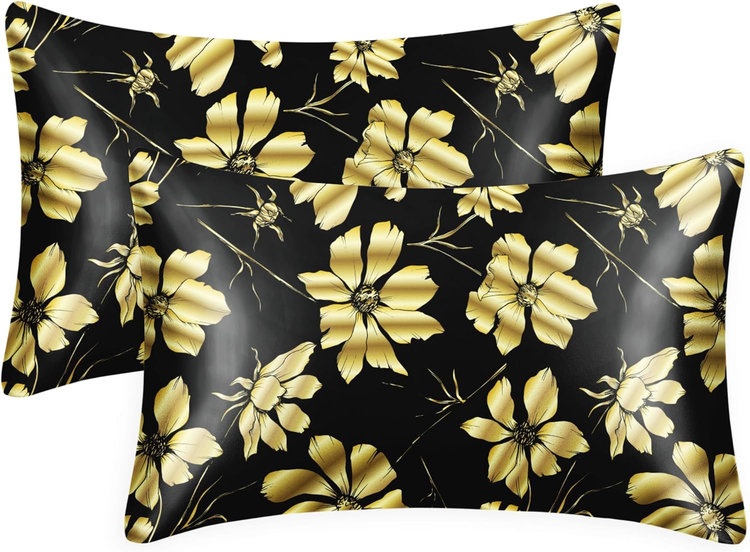 EXQ Home Satin Pillowcase for Hair and Skin Queen - Printed Golden Flowers Silk Pillow Cases 2 Pack 20x30 inches - Satin Pillow Cases Set of 2 with Envelope Closure, Gifts for Women Men