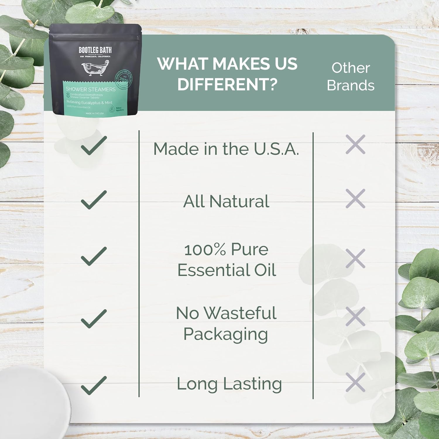 Shower Steamers Aromatherapy Eucalyptus and Mint 8 Pack, 100% Pure Essential Oil, All Natural, for Men and Women, Made in USA