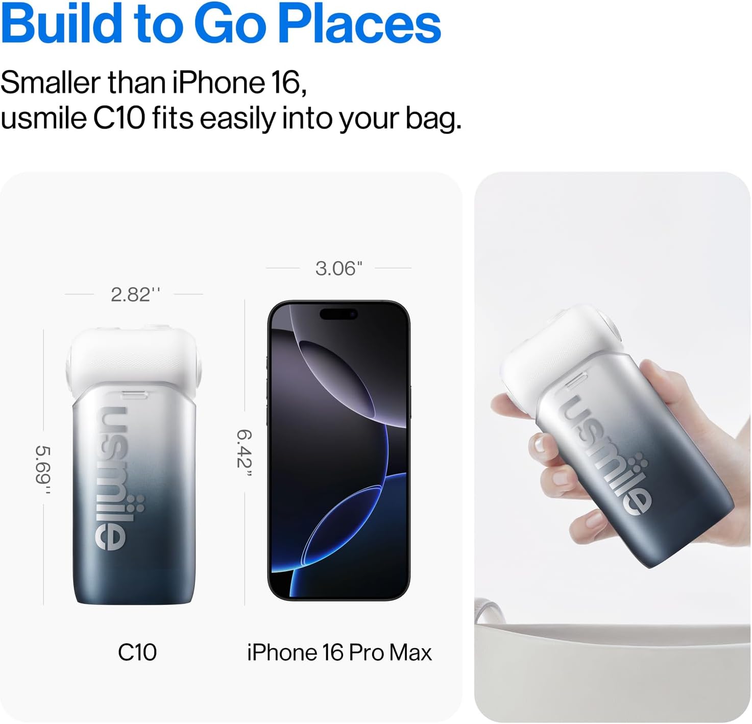 - ✅ Elegant Ink-Inspired Design & Ultra-Portable: The usmile C10 Ink Edition is inspired by traditional ink art, featuring a sleek, minimalist design that blends timeless elegance with modern technology. Lightweight and collapsible, perfect for travel, business trips, or everyday use.