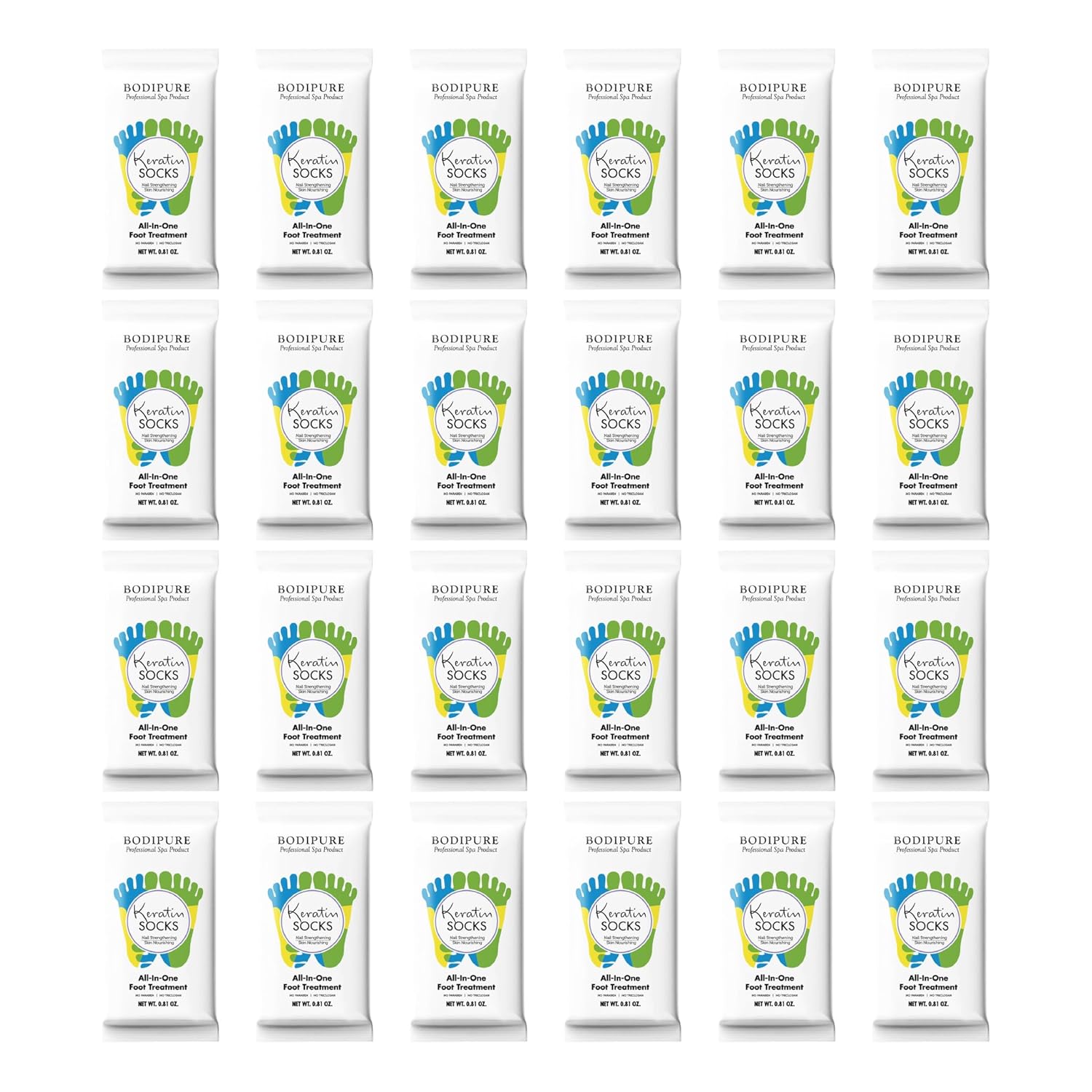 Bodipure All-In-1 Moisturizing Foot Mask, Keratin & Vitamin E Foot Mask for Dry Cracked Feet, Callus & Heel Softening, Easy-to-Use Pedicure Foot Repair, Chemical-free Feet Treatment 24 Pairs