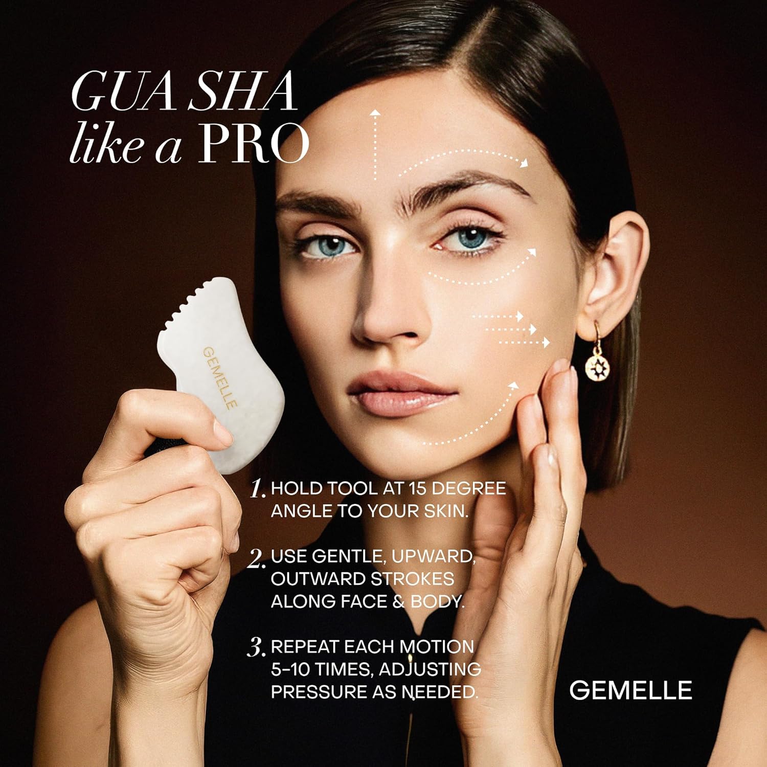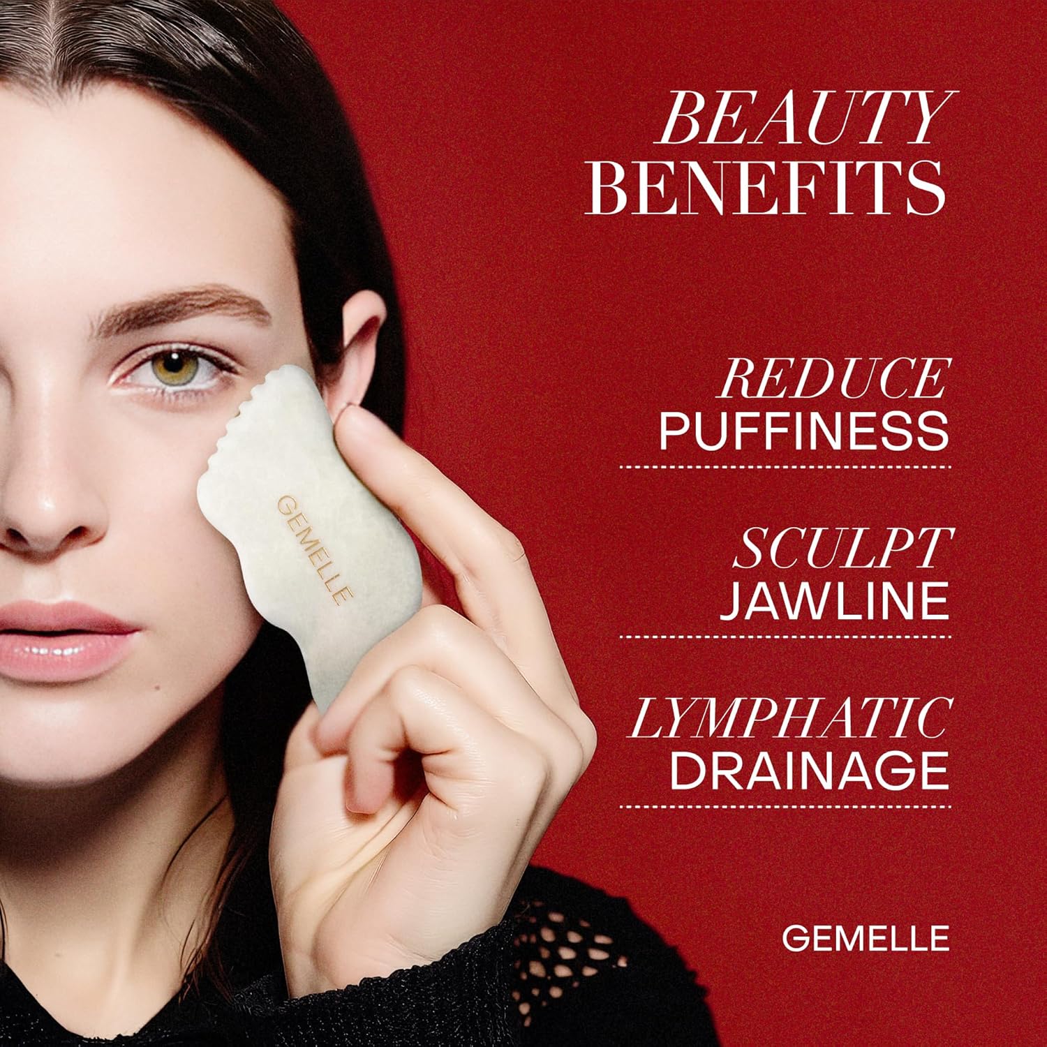 GEMELLE La Sculptante White Jade Gua Sha Facial Tool | Face & Body | 10x Award Winner | 5-Sided Gua Sha Stone for Face Sculpting, Lymphatic Drainage, Guasha Massage, Jawline, Puffiness, Firming, Gifts