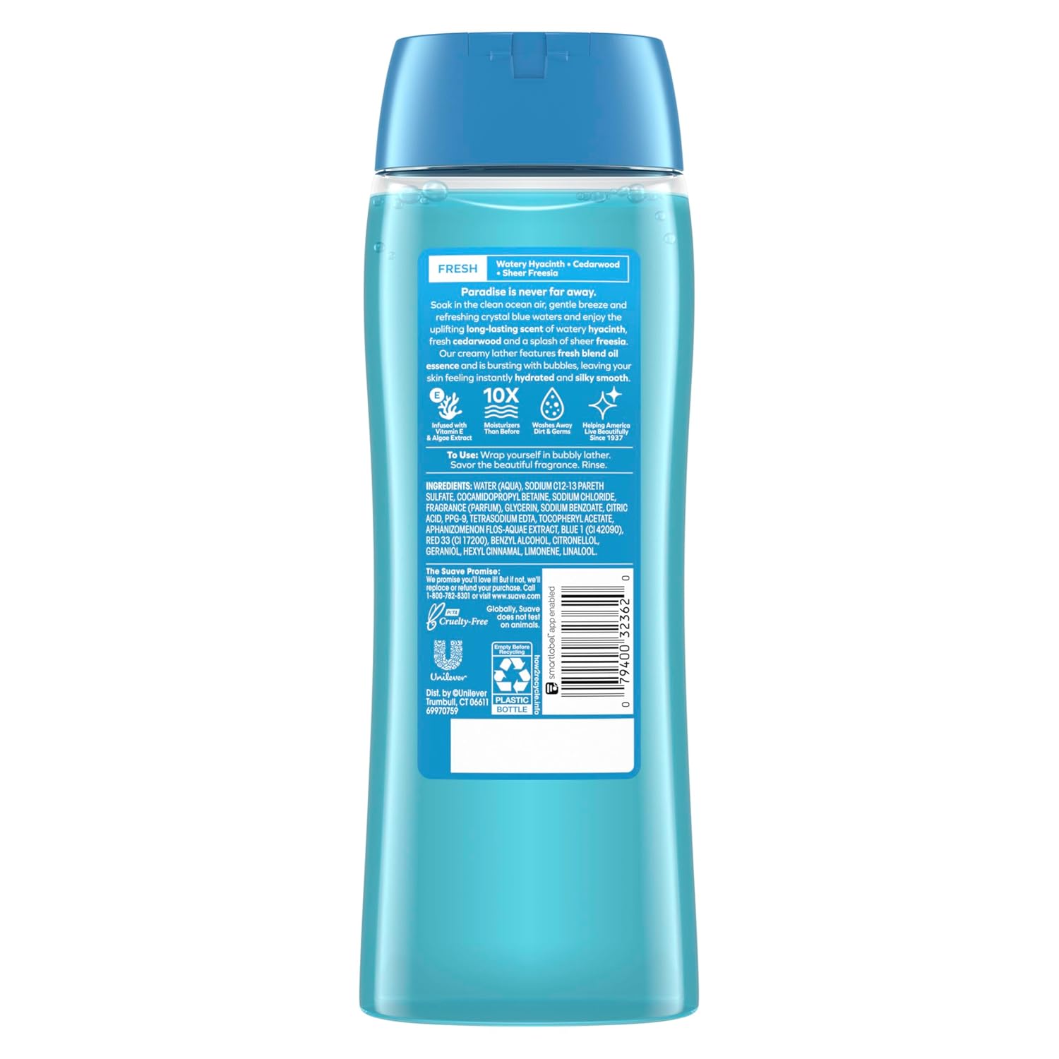 - REFRESHING FRAGRANCE: With refreshing notes of hyacinth, cedarwood, and freesia Suave Body Wash leaves skin lightly scented for a long-lasting, just-showered confidence