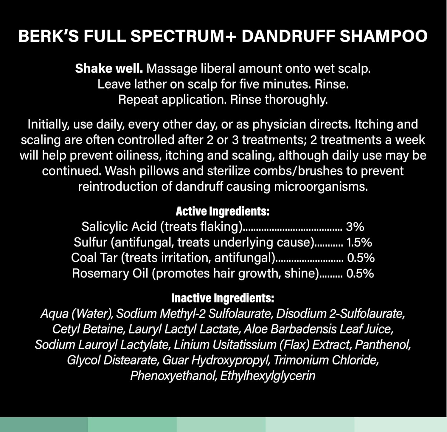 Berk's Full Spectrum Dandruff Shampoo with Coal Tar, Salicylic Acid, Sulfur, and Rosemary Oil, 8 Fl Oz (2-pack)