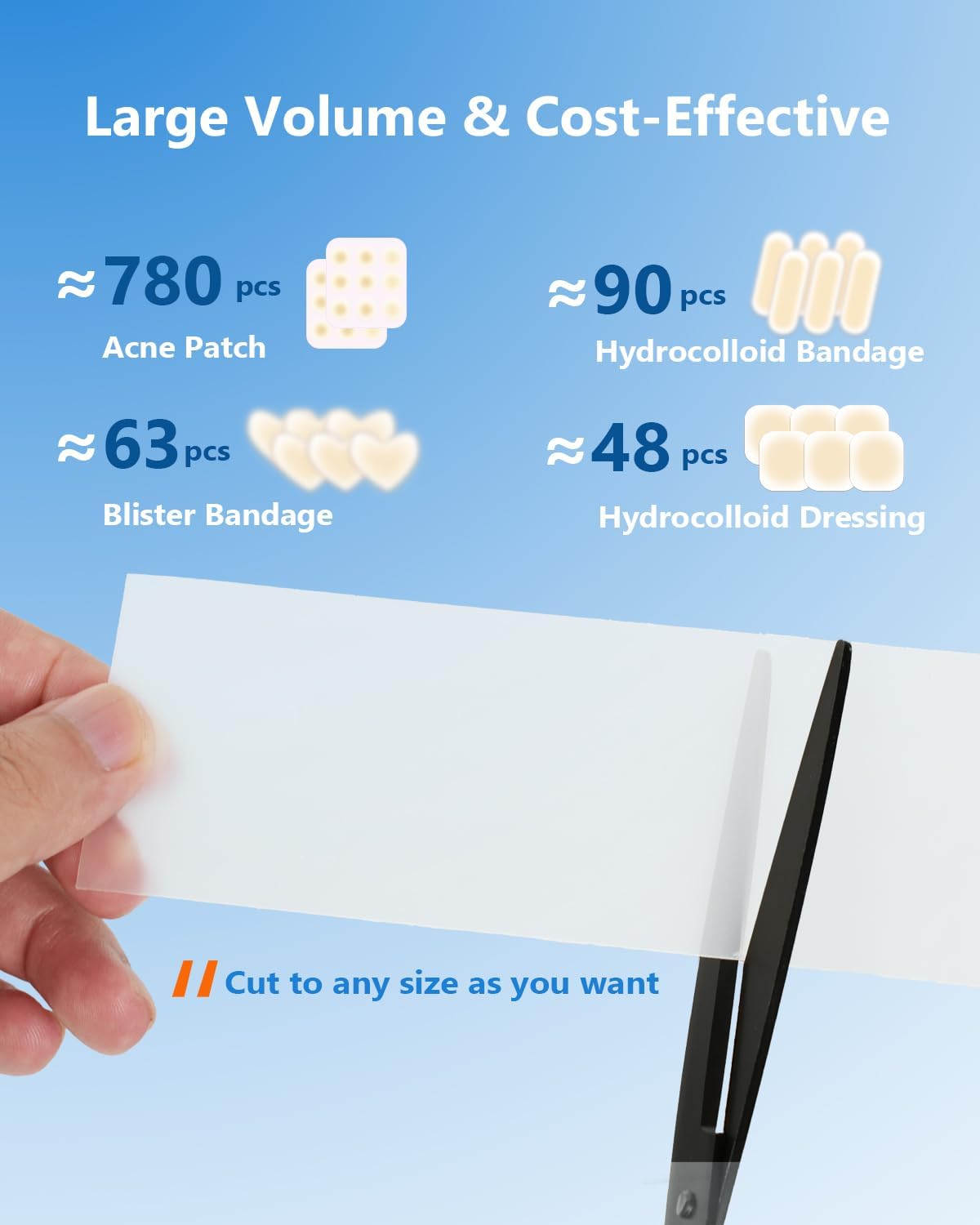 - ✂️ Customizable & Flexible: Save you money with our versatile hydrocolloid roll - cut to any size or shape to fit your wound perfectly. At just 0.3mm thick, the ultra-thin dressing with excellent elasticity conforms comfortably to joints like knees, elbows, and ankles, allowing your full mobility