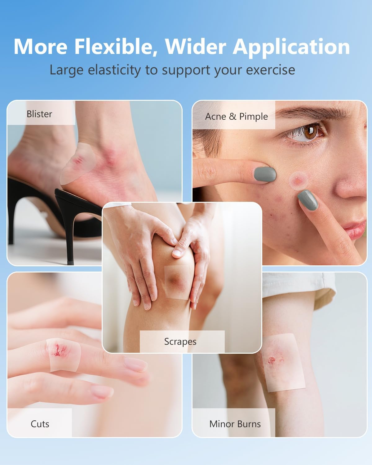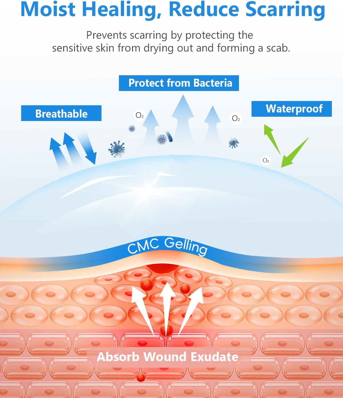 - 💧100% Waterproof Protection: The polyurethane outer layer creates a strong barrier against water, bacteria, and dirt. The ultra-thin hydrocolloid bandages will stay protected even after brief showering without curling. The skin-friendly touch and breathability ensure comfort with no stuffiness