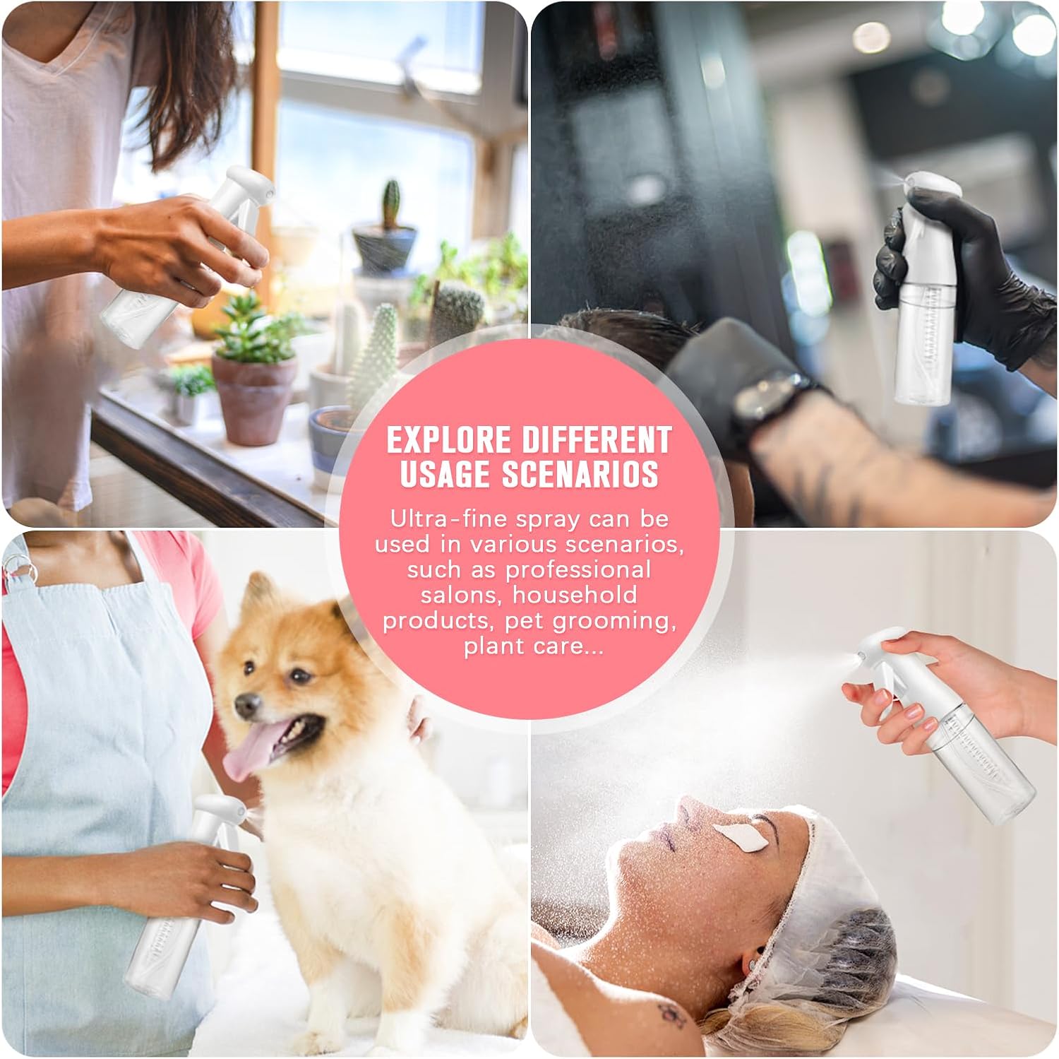 - 【Multi-Function Spray Bottle】: This sturdy and reusable spray bottle is not only suitable for professional salon use, but also suitable for family life hair and body care, plant care, pet grooming and home cleaning. At the same time, the hairspray bottle is also suitable as a gift like Christmas, Birthday, Valentine's Day for family and friends, which is not only beautiful but also practical