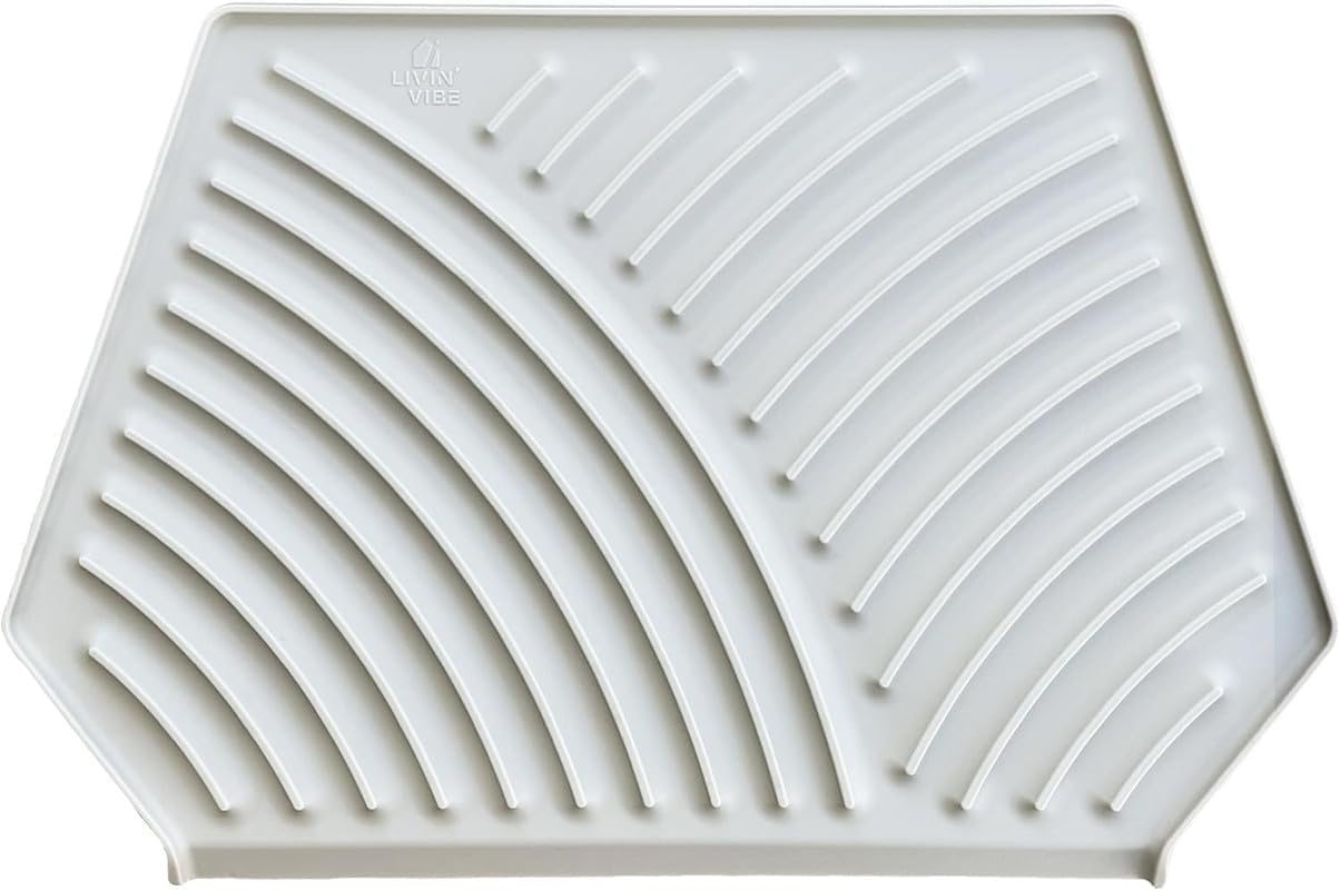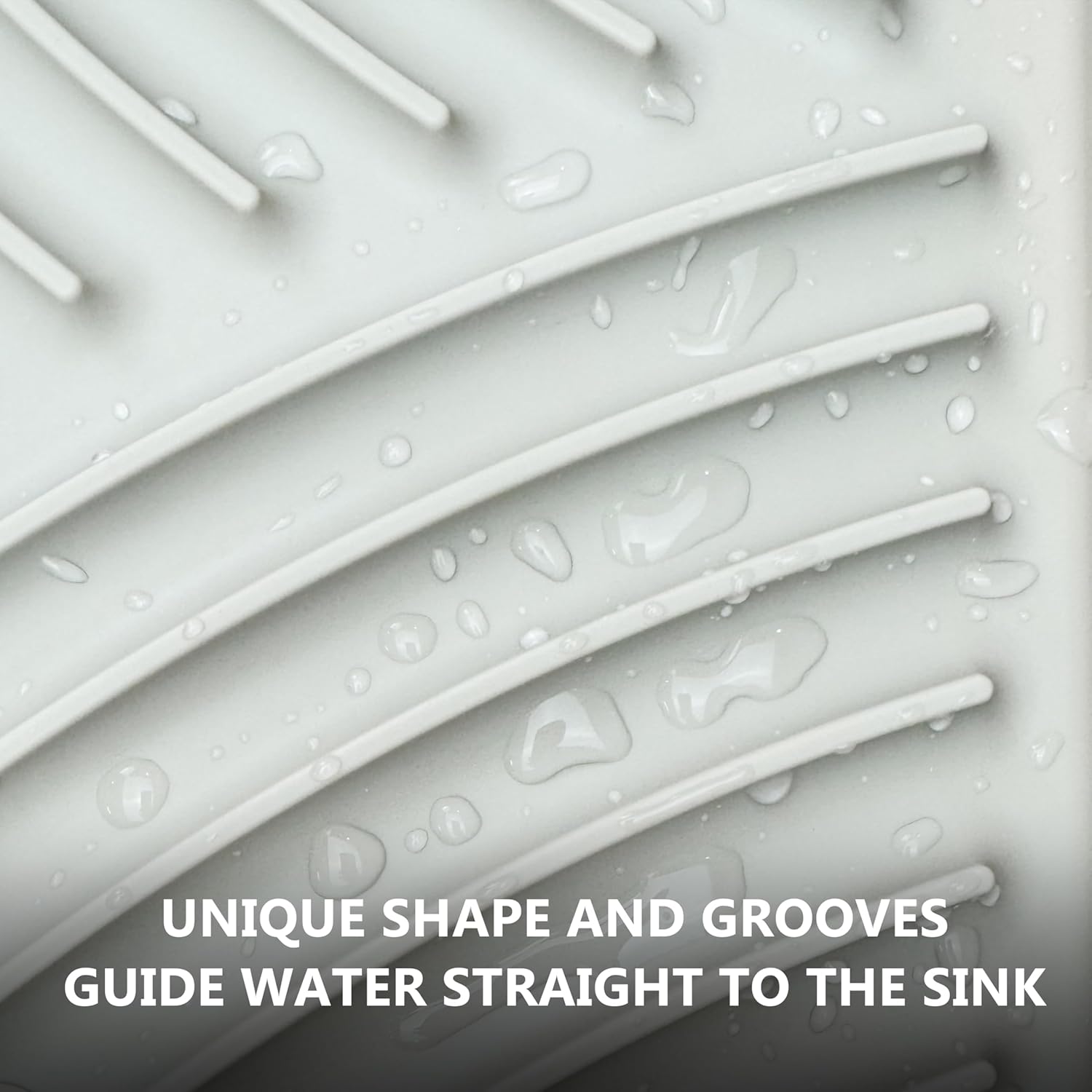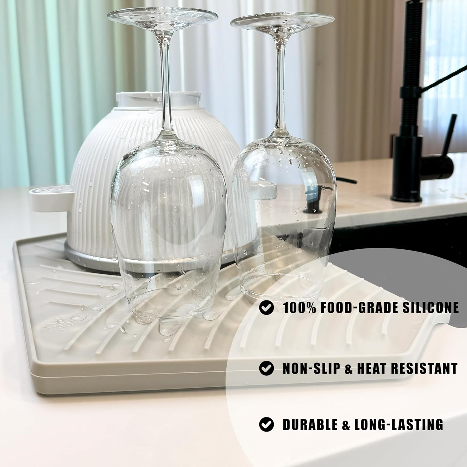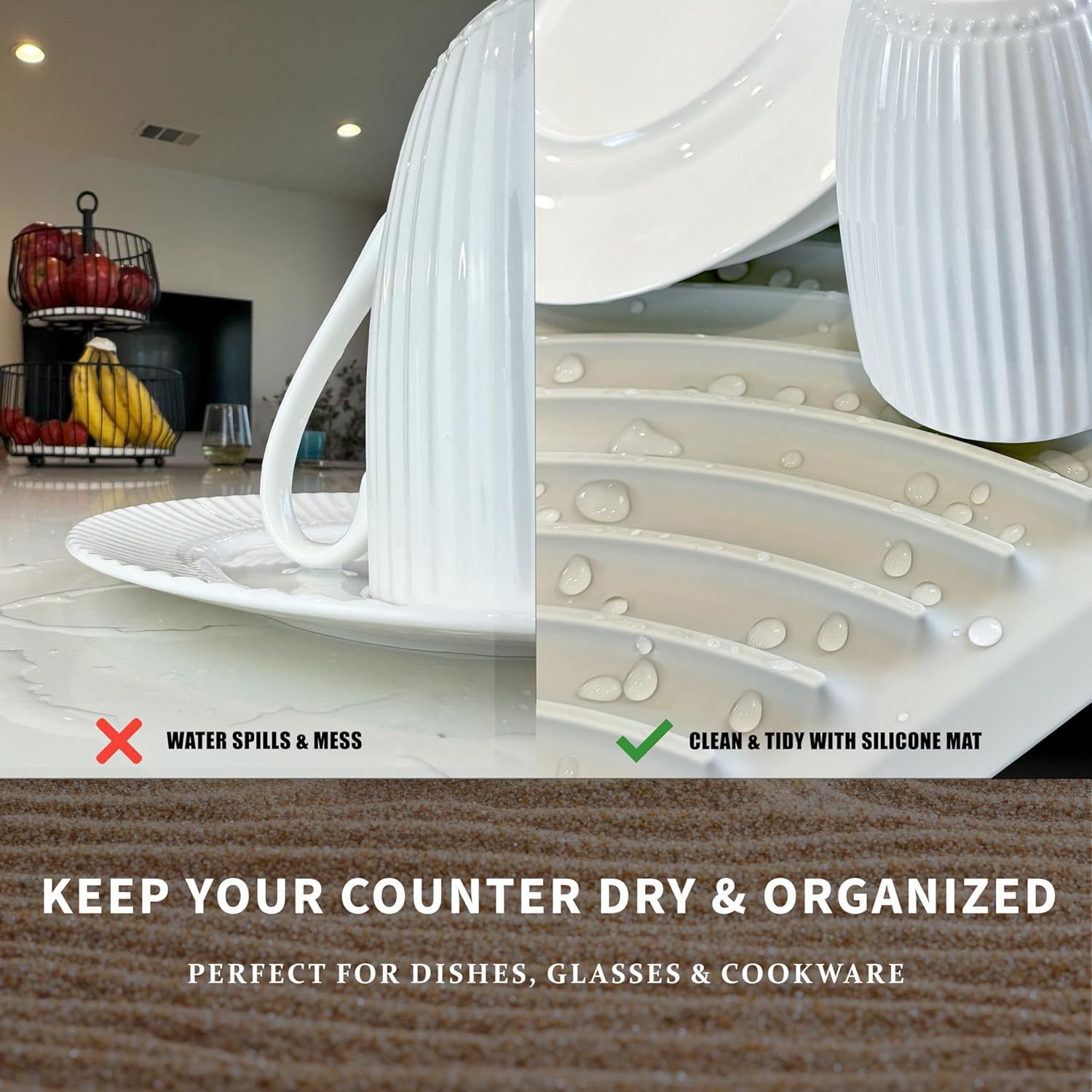 Silicone Dish Drying Mat with Drain, Self-Draining, Heat Resistant & Non-Slip Kitchen Counter Mat, Easy to Clean, Reusable, 19.3'' x 13'', Greige