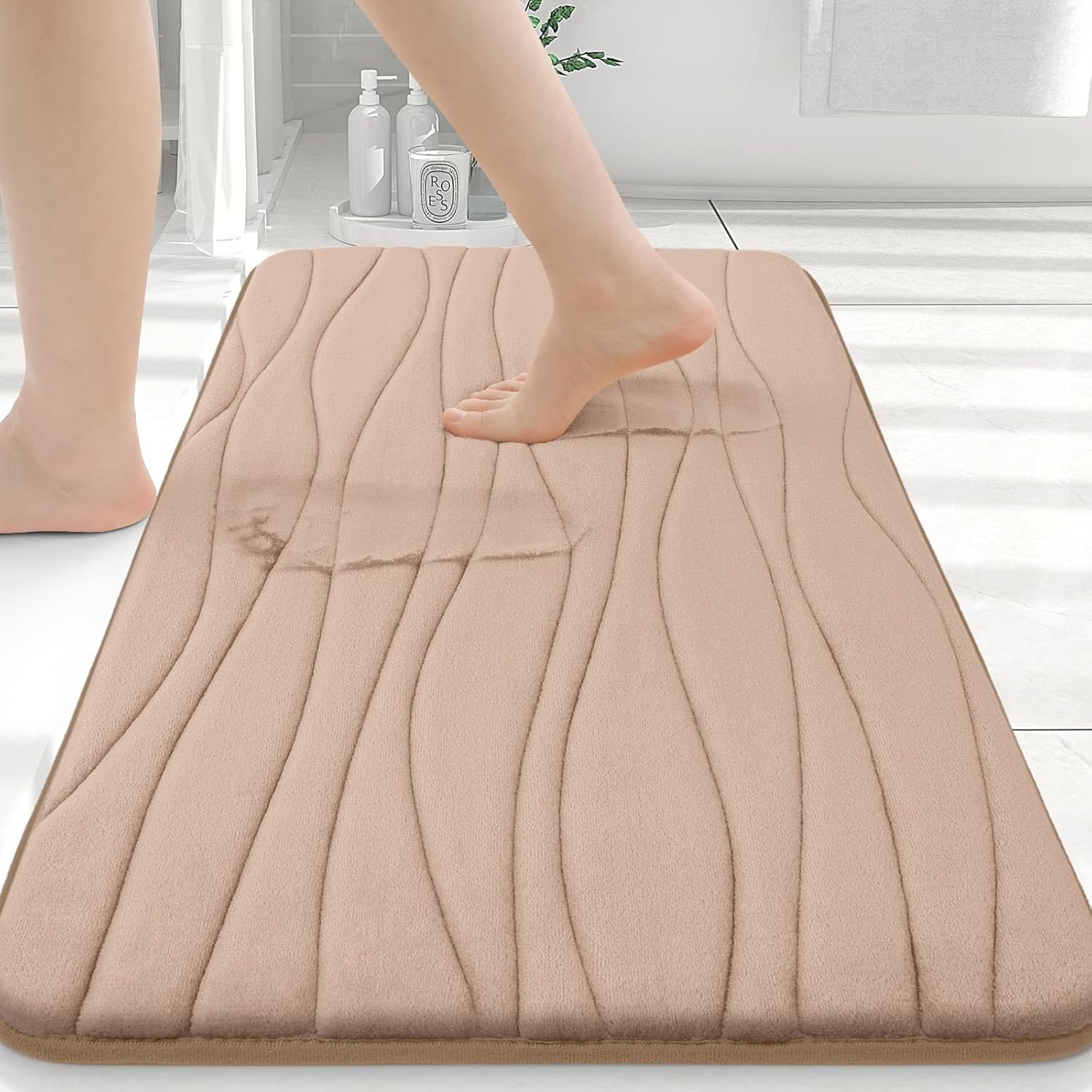 Buganda Memory Foam Bathroom Rug Mat 24x16, Extra Soft and Absorbent Bath Mats, Non-Slip and Machine Washable Bath Rugs for Bathroom Floor,Tub and Shower, Dark Beige