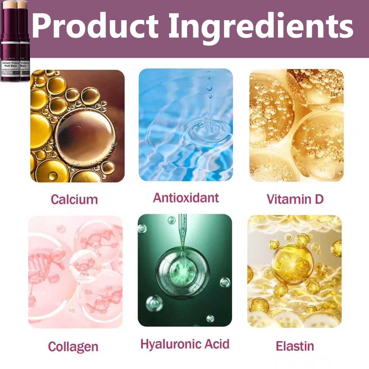 - NUTRIENT-RICH FORMULA: Infused with calcium and vitamin D, our multi balm harnesses the power of Moisturizing and elastin to repair stressed skin, combat collagen loss, and enhance elasticity for a youthful appearance