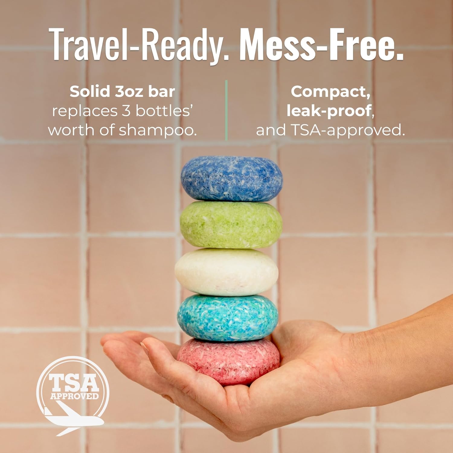 - TRAVEL-FRIENDLY AND TSA-APPROVED: Solid, mess-free shampoo bar fits easily in bags; ideal for travel, gym days, and minimalist lifestyles.