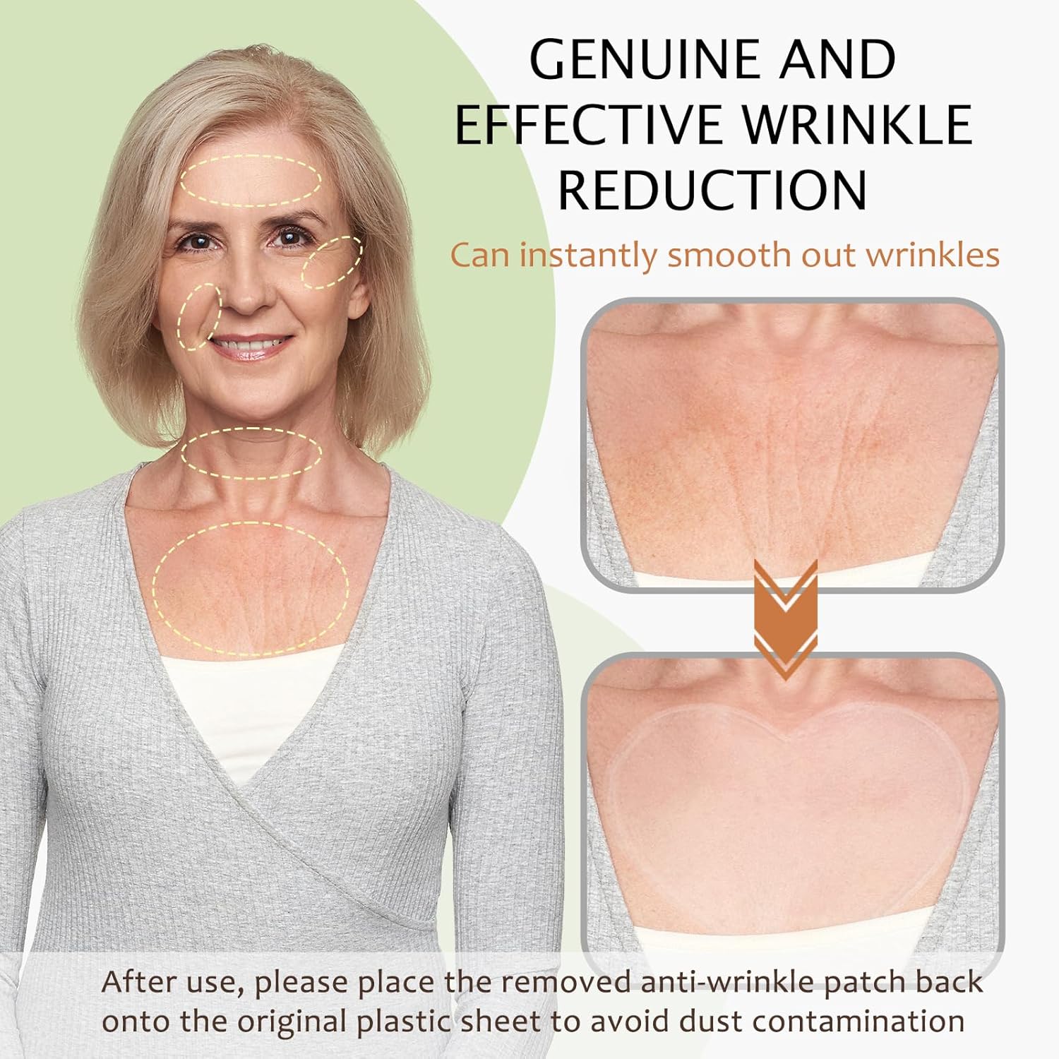 - Skin Firming: These silicone patches are specifically designed to improve the firmness of the chest skin, effectively reducing the appearance of wrinkles. By using these patches, you can experience noticeable skin tightening and lifting in a short time, helping to create a smoother skin appearance and restore a youthful glow.