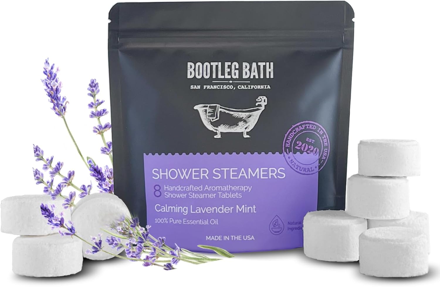 Shower Steamers Aromatherapy Lavender 8 Pack, 100% Pure Essential Oil, All Natural, for Men and Women, Made in USA