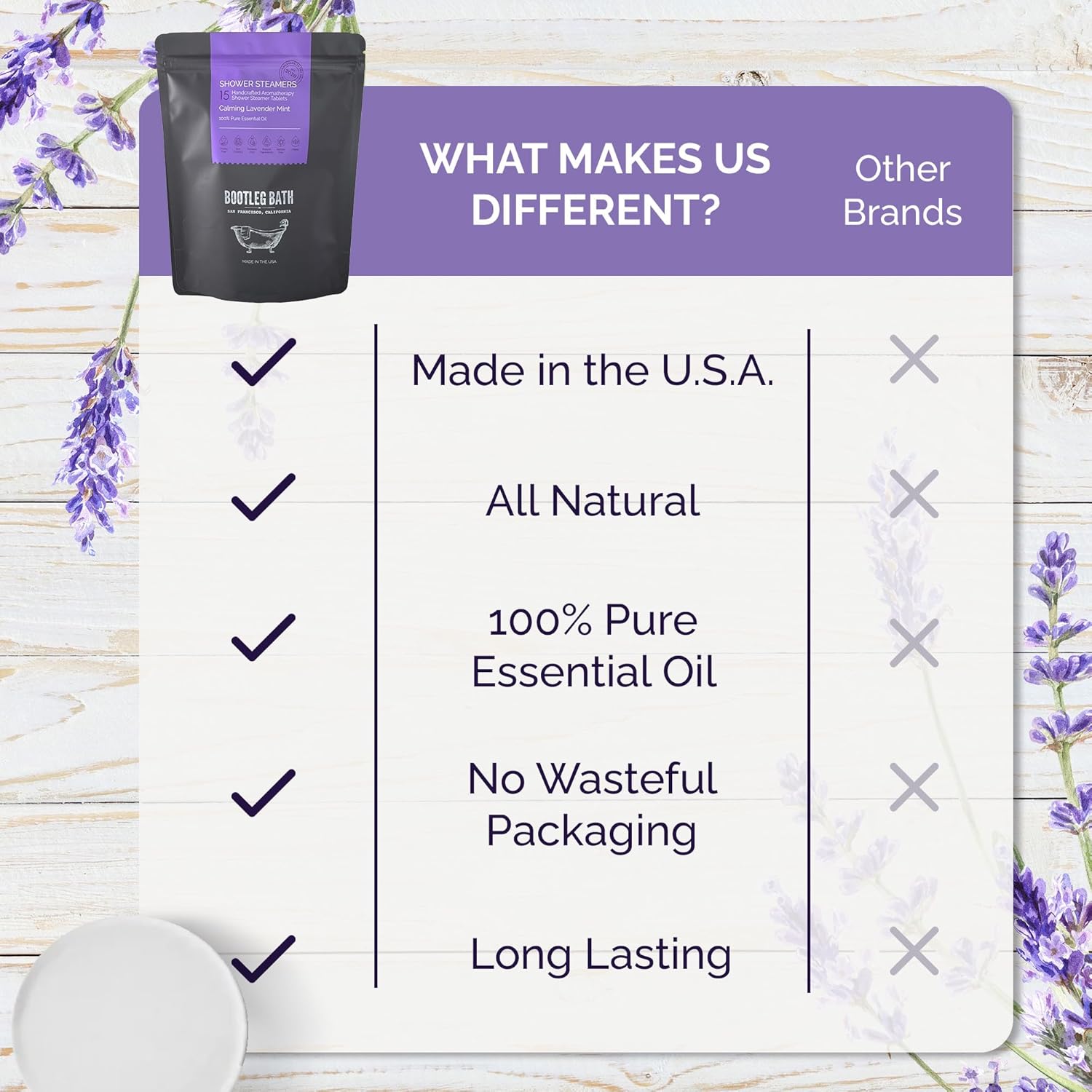 - Aromatherapy - Each shower steamer is made using 100% Pure Essential Oils and Natural Menthol to calm your mind and refresh your senses, that will leave you rejuvenated with each use.